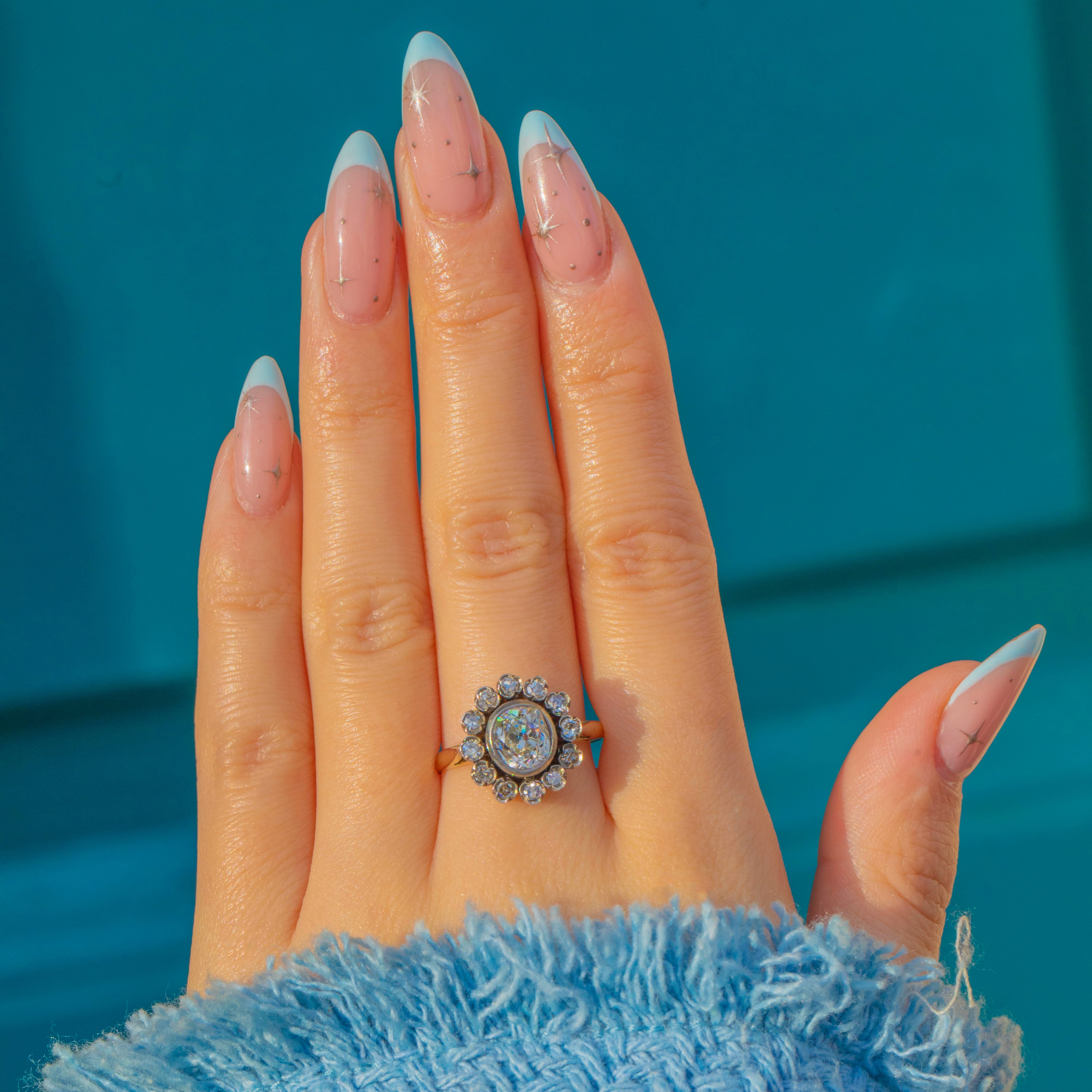 1.35ct Antique 18ct Gold Old Mine Cut Diamond Cluster Engagement Ring Item added