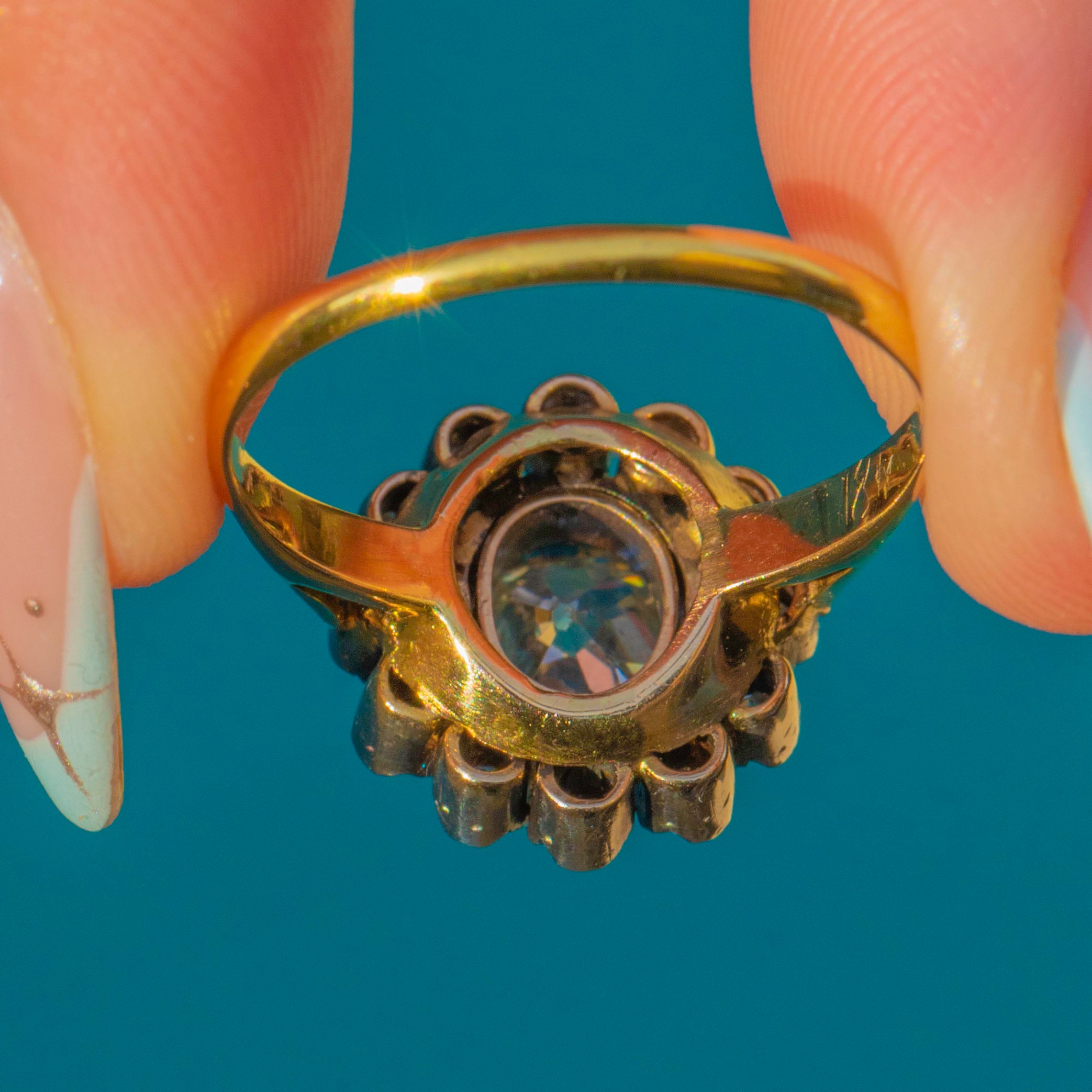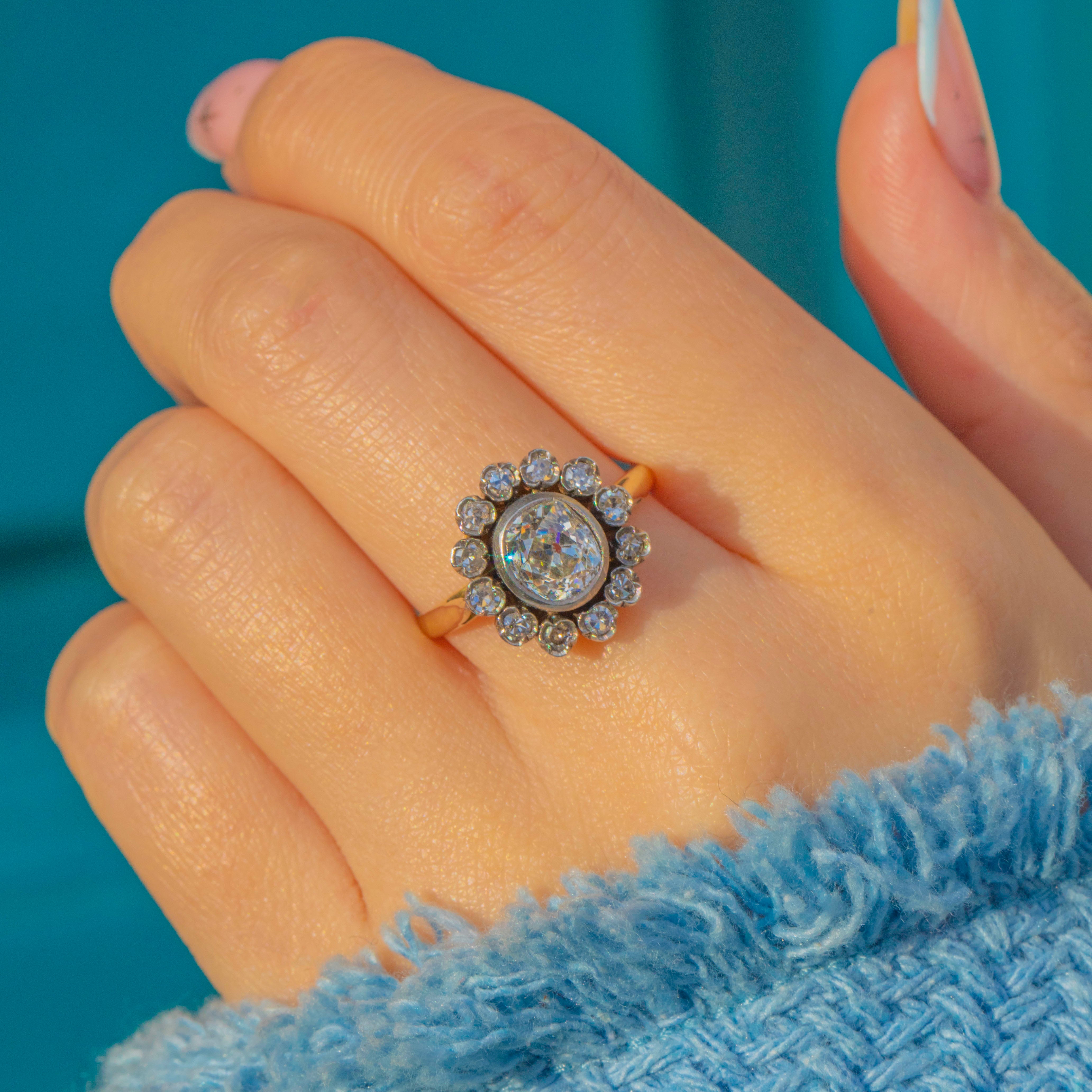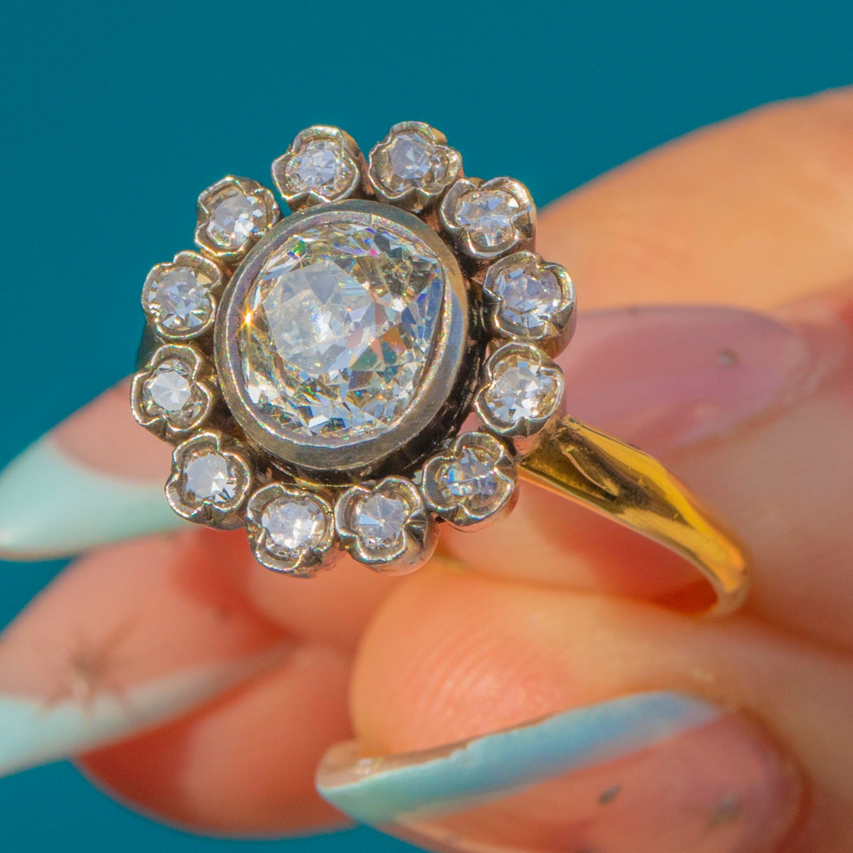 1.35ct Antique 18ct Gold Old Mine Cut Diamond Cluster Engagement Ring