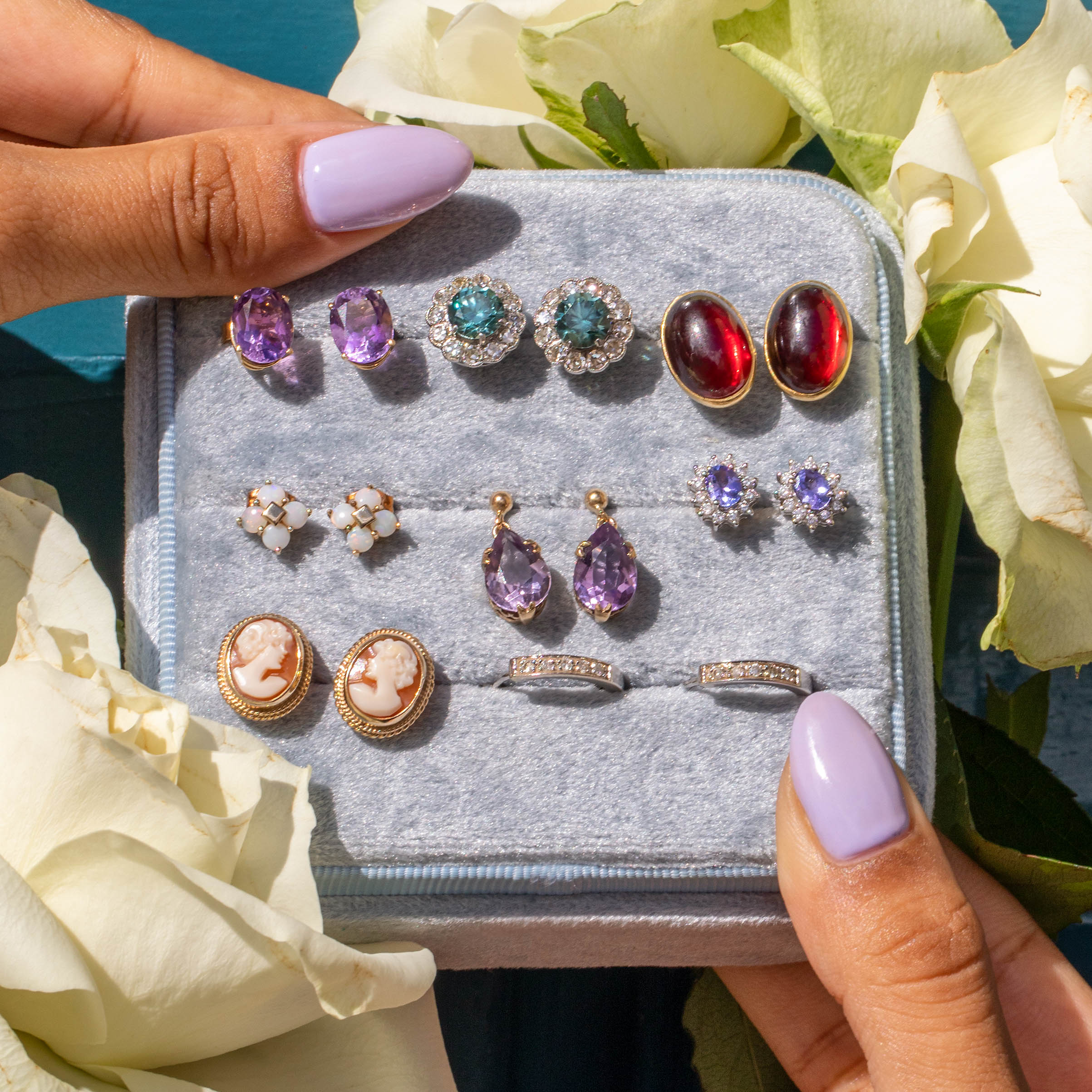 Bound together by buttery 10ct Gold, these Vintage stud earrings have a square centre bringing their design together. Their delicate size makes them the ideal choice to nestle amongst your other Gold goodies, whether they accompany a pair of hoops or even a solid Gold stud!