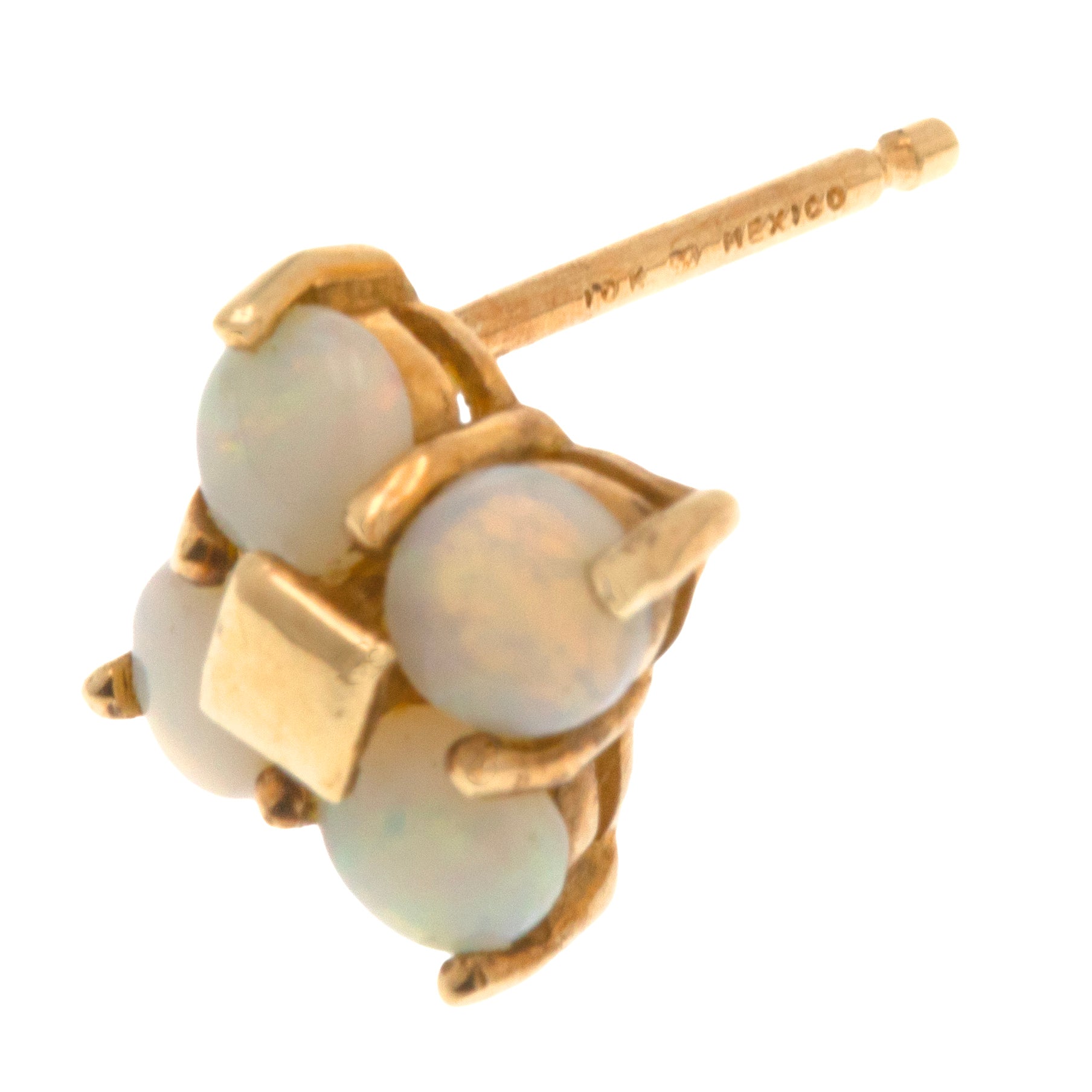 EXCELLENT. With securely set smooth Opals, perfectly formed yellow Gold, and tight-fitting butterfly backs, these 10ct Gold Opal flower cluster stud earrings are in excellent condition! The Opals are a dainty delight, and look gorgeous against the buttery 9ct Gold. With 9ct Gold butterfly backs you can wear these earrings with absolute confidence.