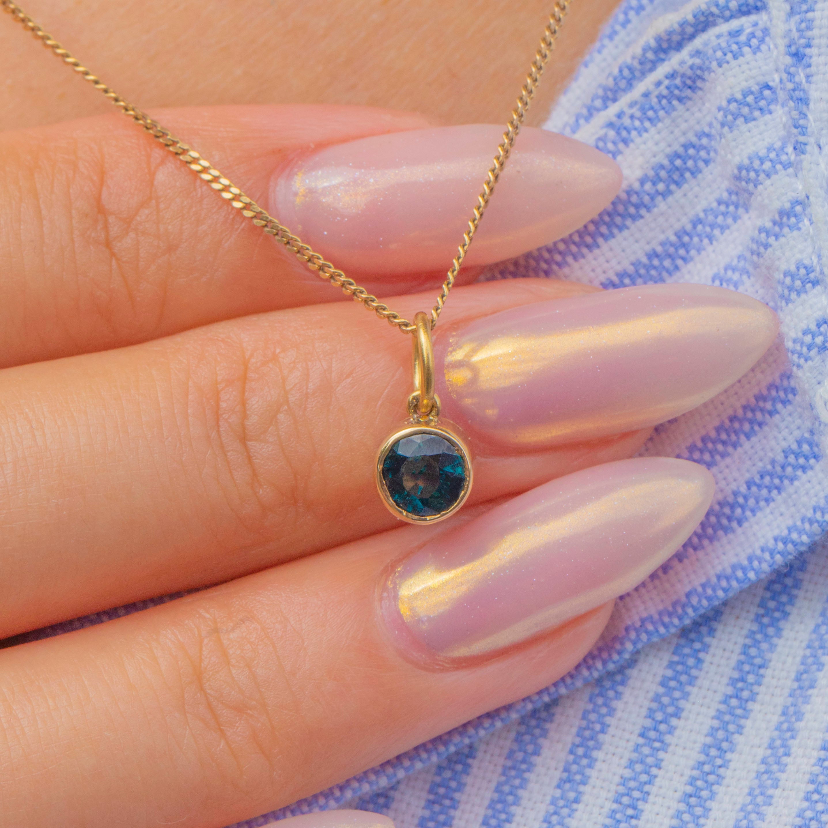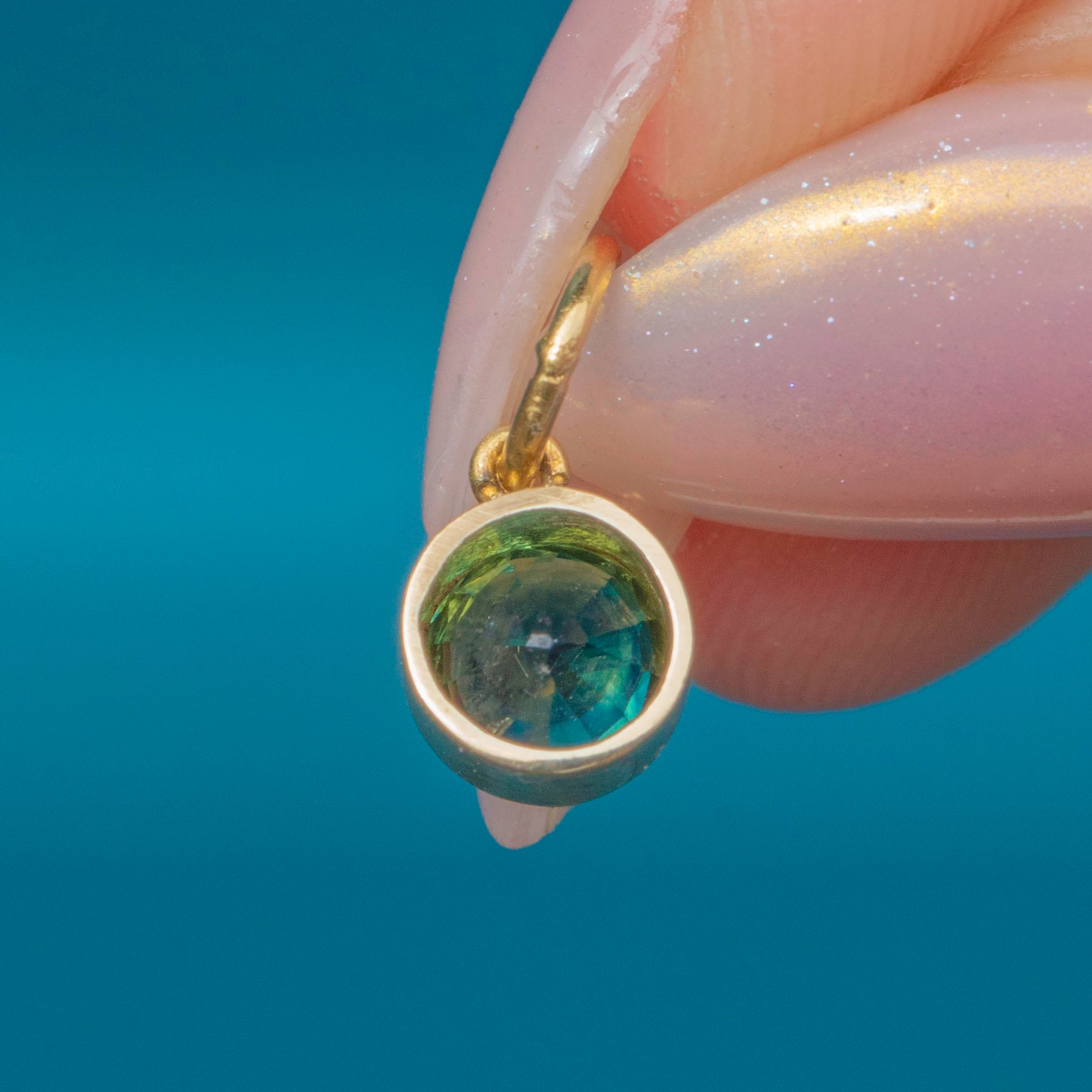 The setting is a clean 14ct Gold bezel with a simple jump ring, making this an easy and versatile piece to wear on a chain or bracelet. Understated yet full of colour, it is a timeless jewel that adds a pop of gemstone brilliance to any look.
