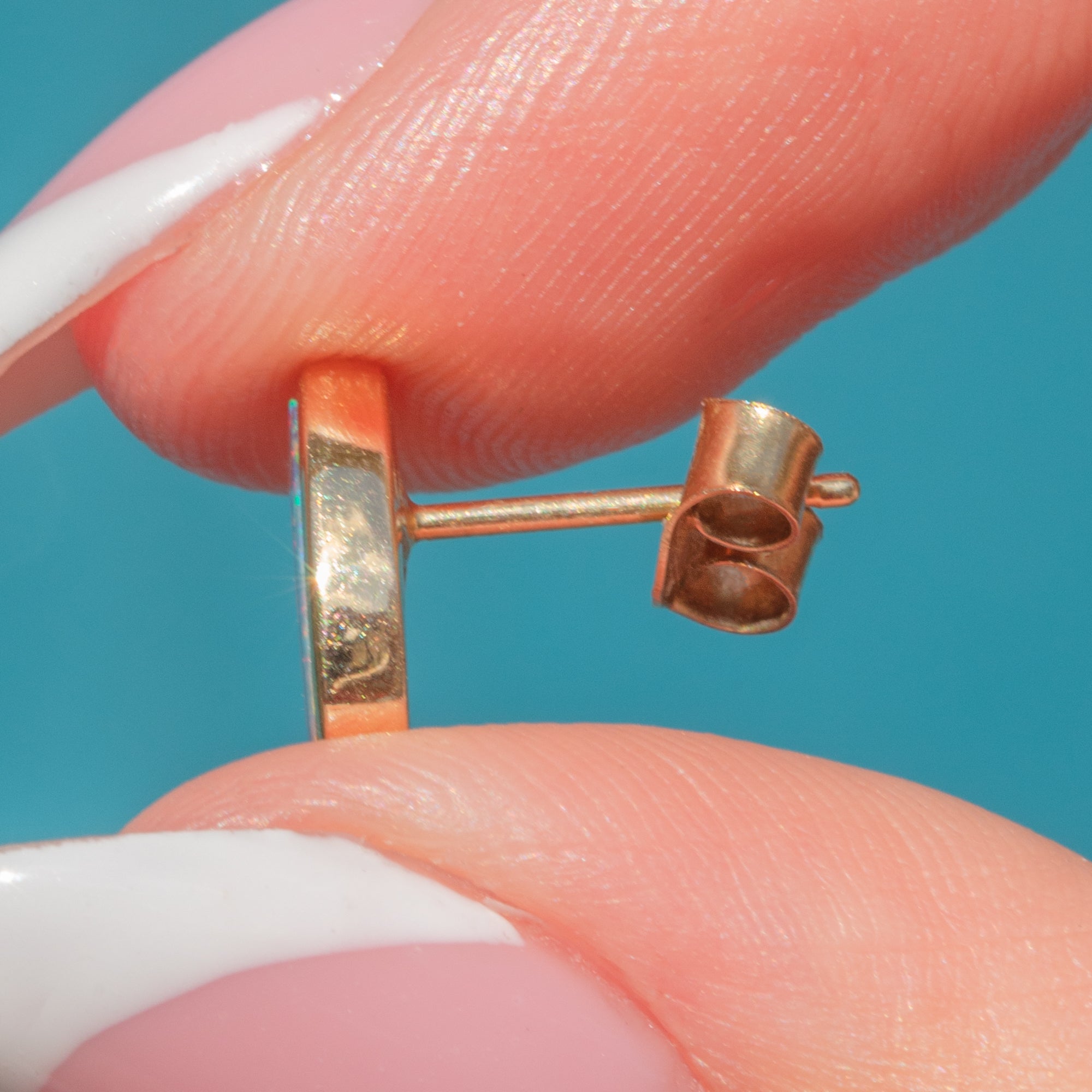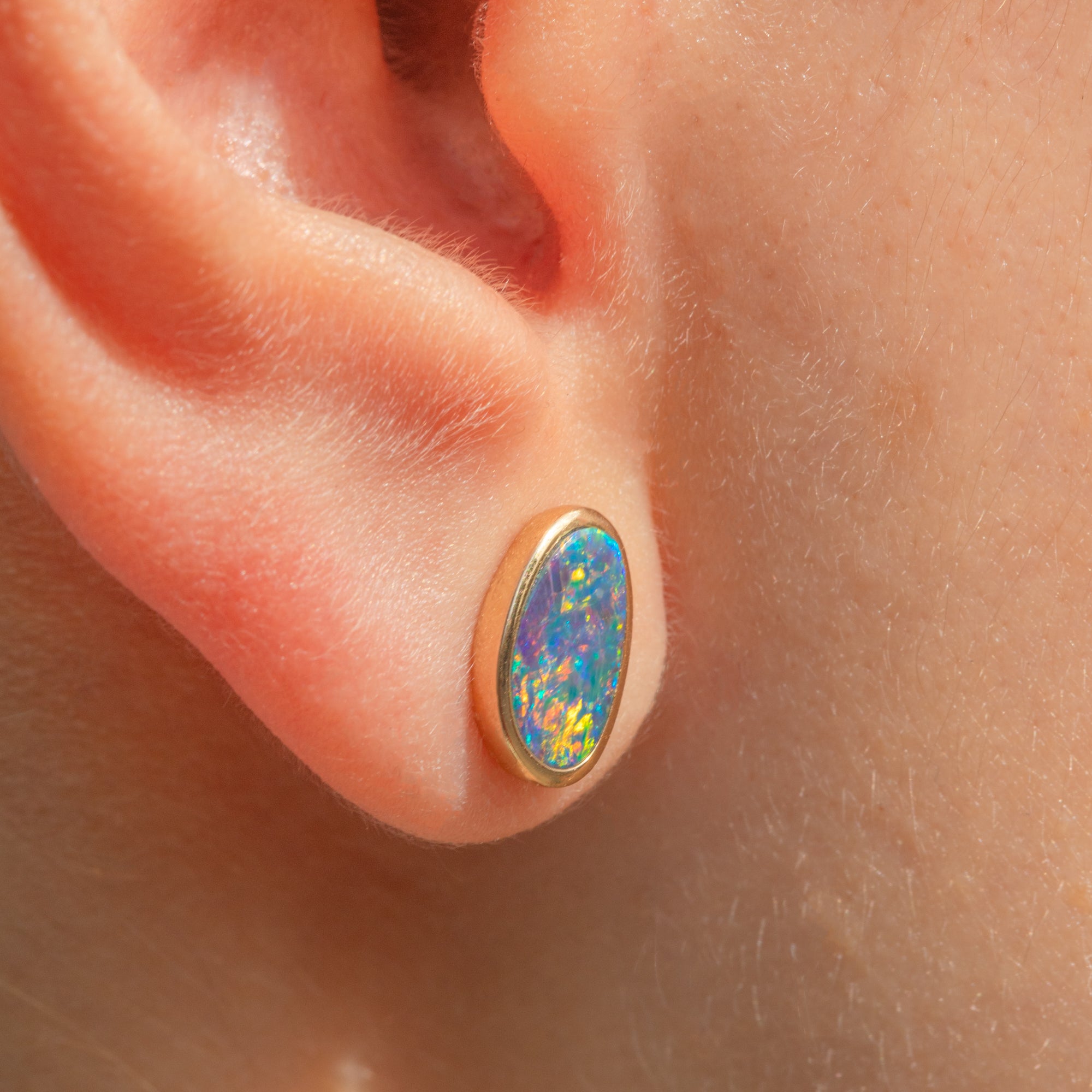 The Opals are set in buttery Gold bezels, the warmth complementing the vibrant gemstones effortlessly. A highly versatile pair, these vintage studs will fit right at home in your collection.