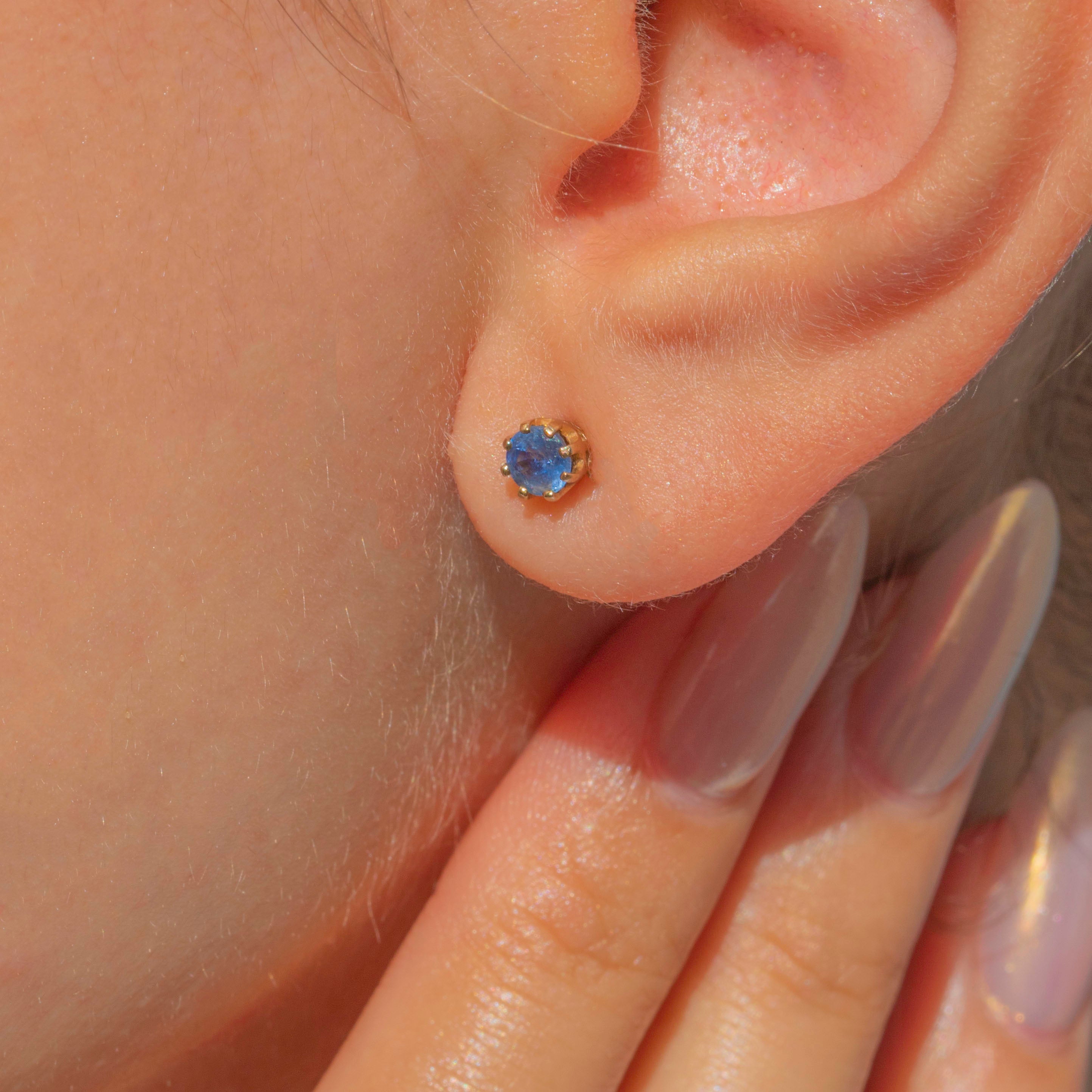 A charming pair of vintage stud earrings crafted in 14ct Gold, each set with a vivid Cornflower Blue Sapphire. The Sapphires sparkle with their signature bright, fresh hue, delicately mounted in classic claw settings that allow light to flood the stones. Understated yet elegant, these earrings are a versatile treasure — perfect for everyday wear or as a subtle accent to evening attire.