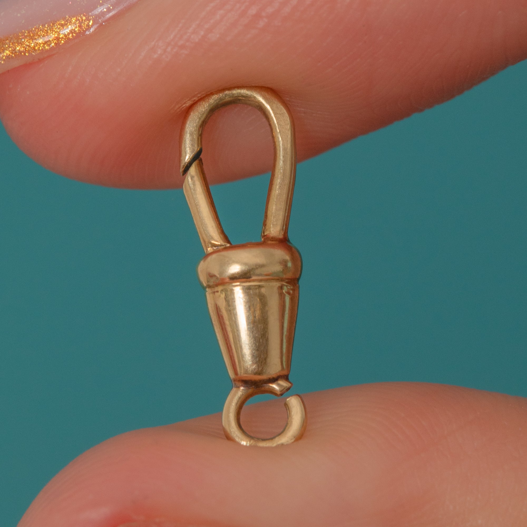 This late Art Deco 14ct Gold dog clip is a refined example of 1930s craftsmanship. Simple, elegant and beautifully engineered, it’s ideal for attaching pendants, fobs or charms to your favourite chain.