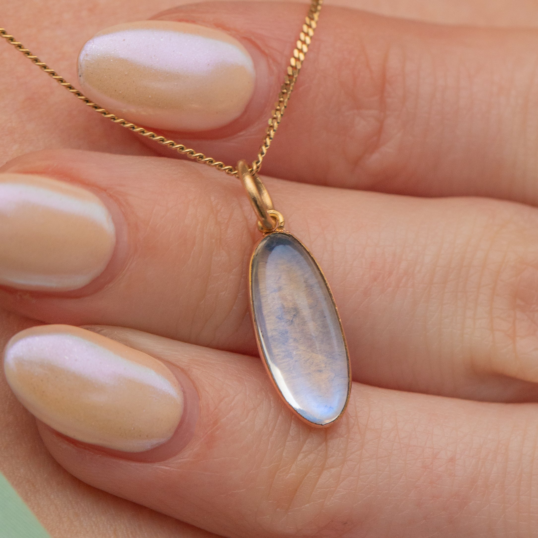 You will instantly become entranced by this 14ct Gold Moonstone pendant! The silver schiller of her Moonstone glistens softly against the buttery backdrop of her 14ct Gold bezel setting, like a moonlit sky on a clear winter's night.