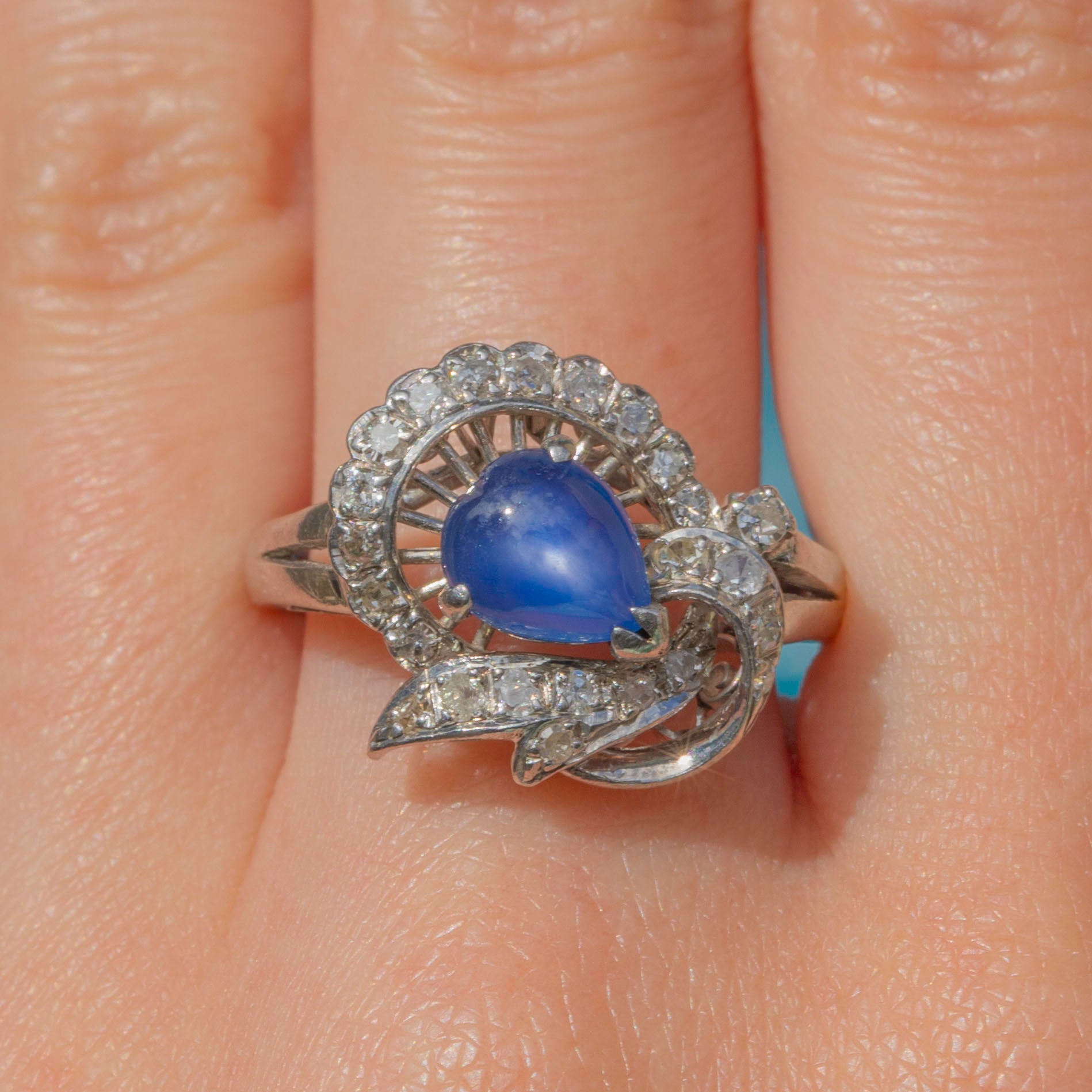 14ct Gold Star Sapphire Heart Diamond Cluster Ring, 0.55ct Natural Star Sapphire Item added