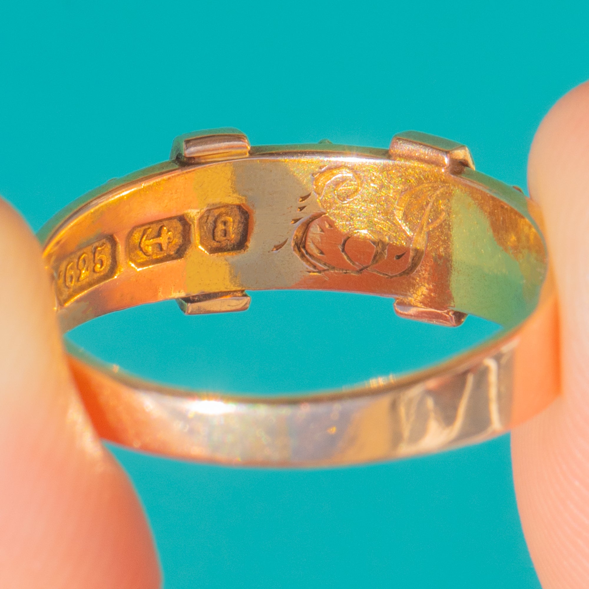 Stamped with Birmingham hallmarks for 1900, this is a beautiful piece to wear solo or stack for a refined antique touch. Inside the band you’ll find the sweet inscription “EJ”, a romantic whisper from the past.