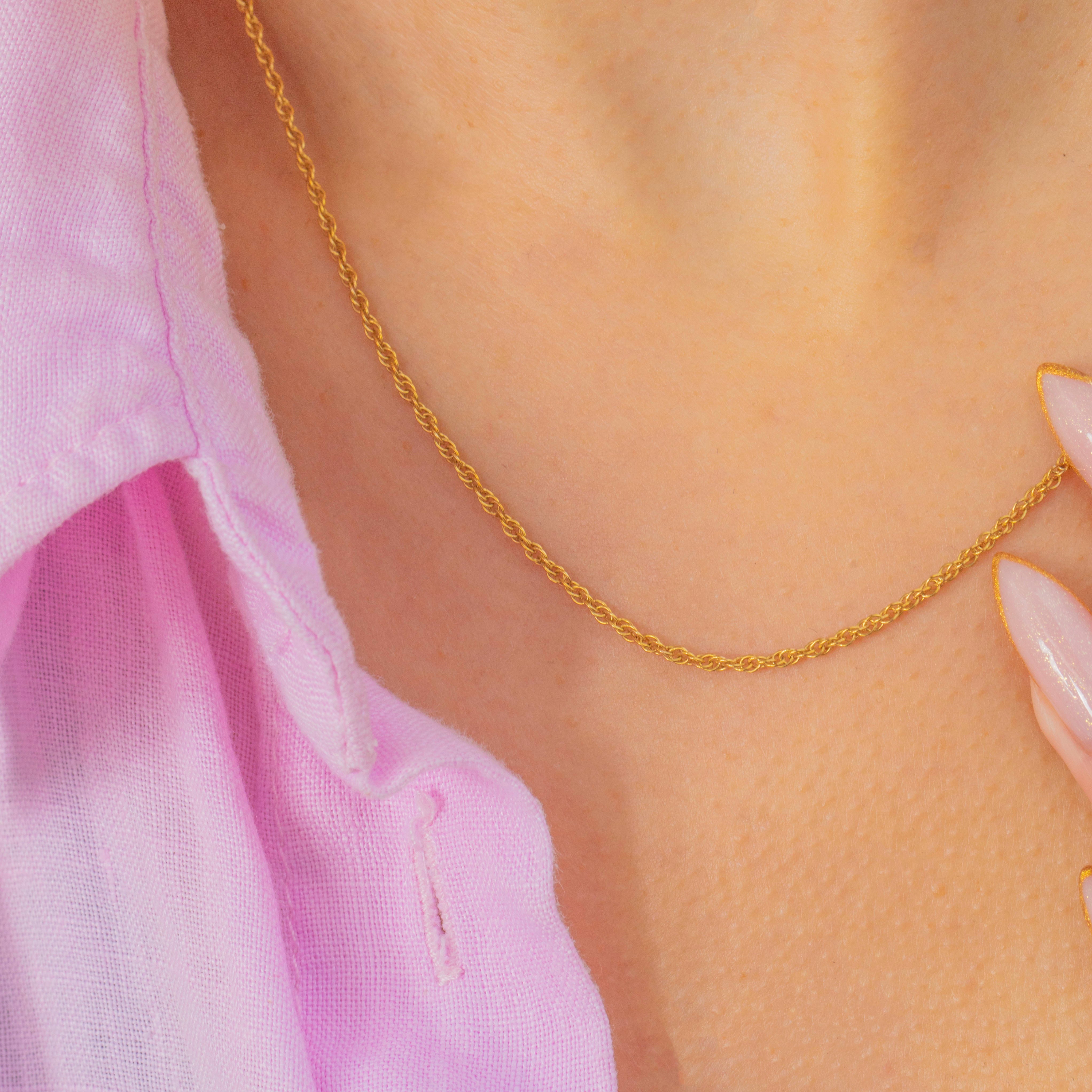 This Vintage 9ct Gold rope chain is a classic and versatile staple. The twisted links catch the light beautifully, giving it a bright, fluid sparkle that layers effortlessly with charms, pendants or other chains.