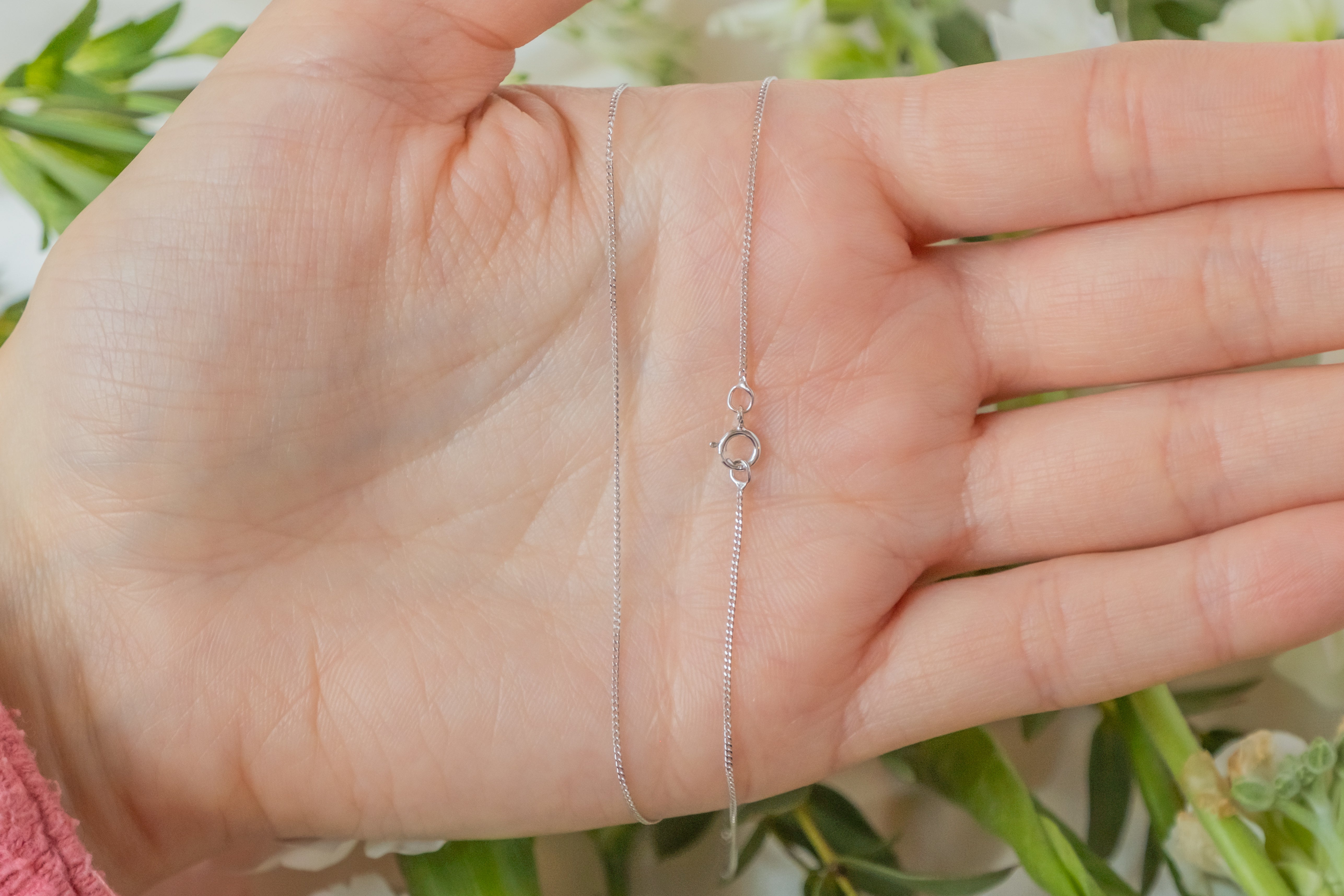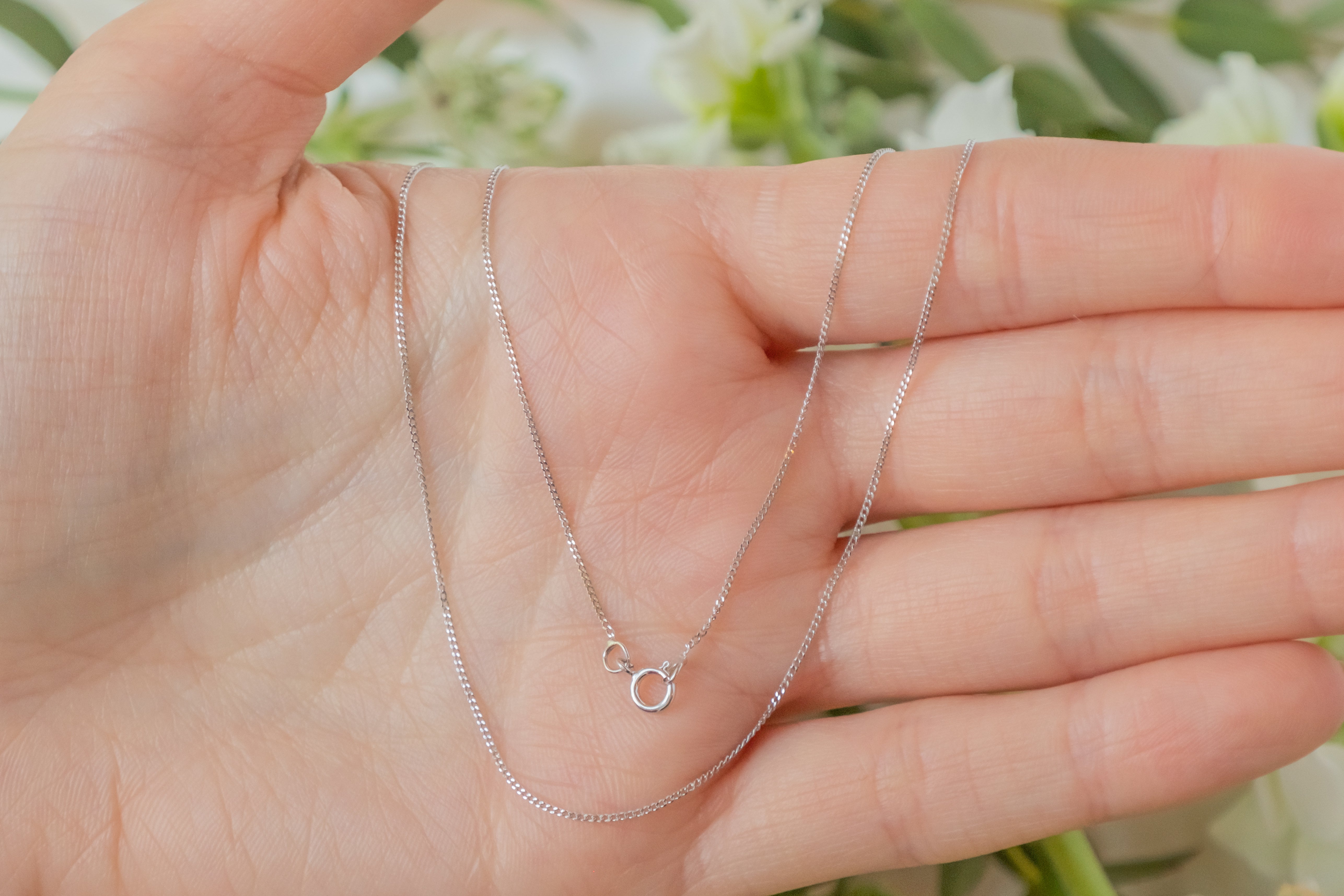 This is a gorgeous 9ct White Gold skinny curb chain! This lovely piece has a bright finish and will accompany one of your antique charms perfectly.
