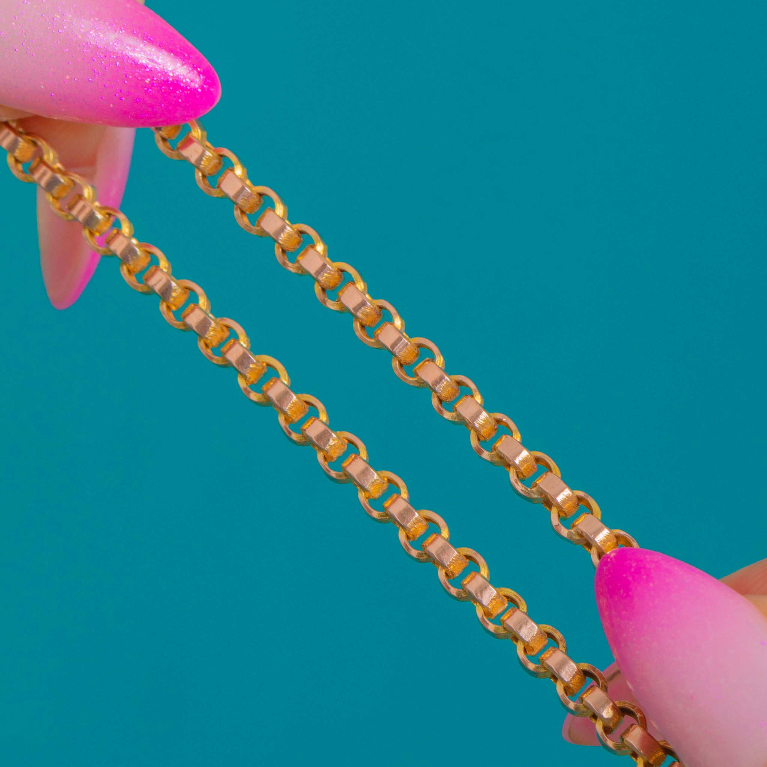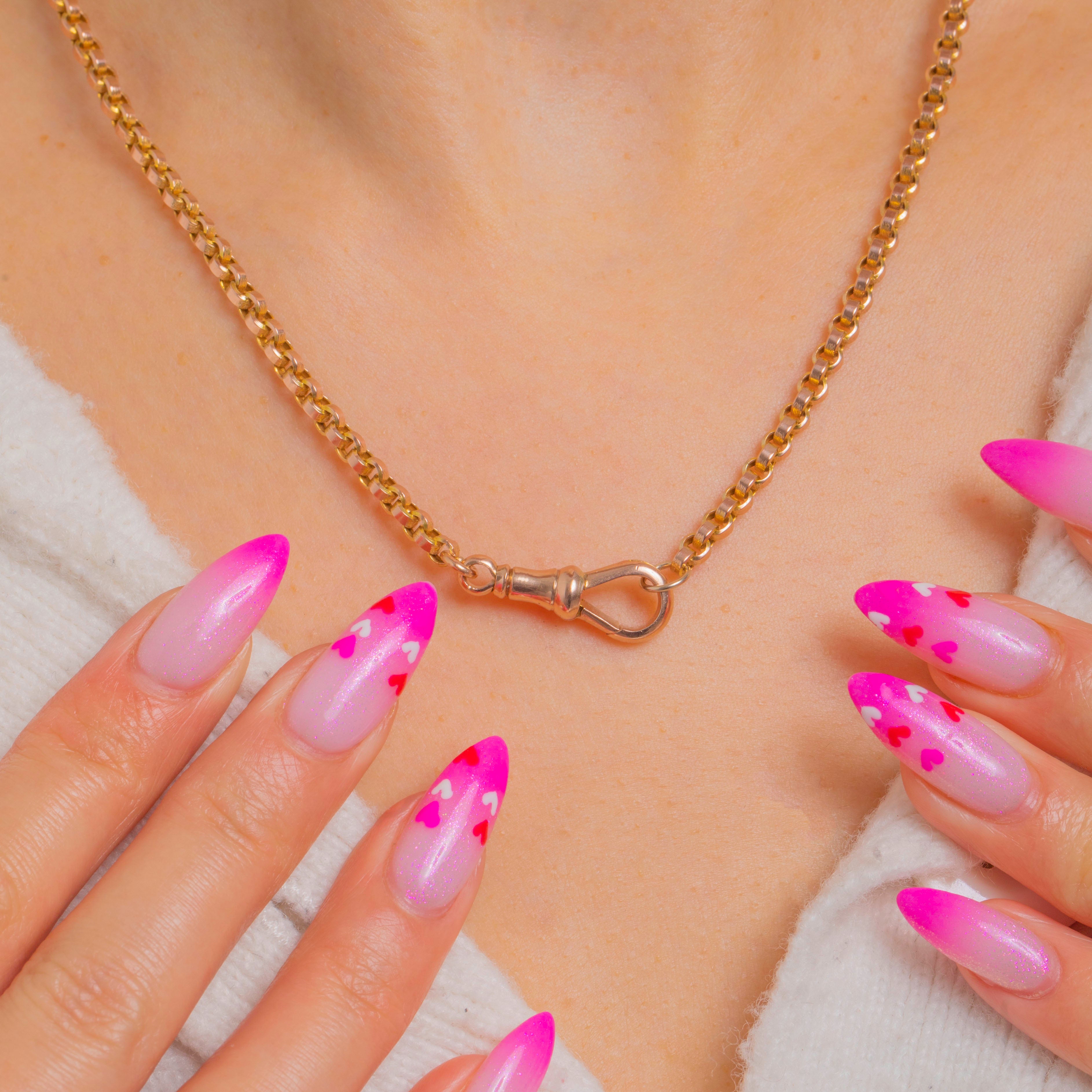 An elegant Victorian 9ct Gold belcher chain, timeless in its simplicity and rich in warm Golden hue. The classic round belcher links flow with beautiful fluidity, giving this piece a refined everyday presence that sits gracefully at the collarbone.
