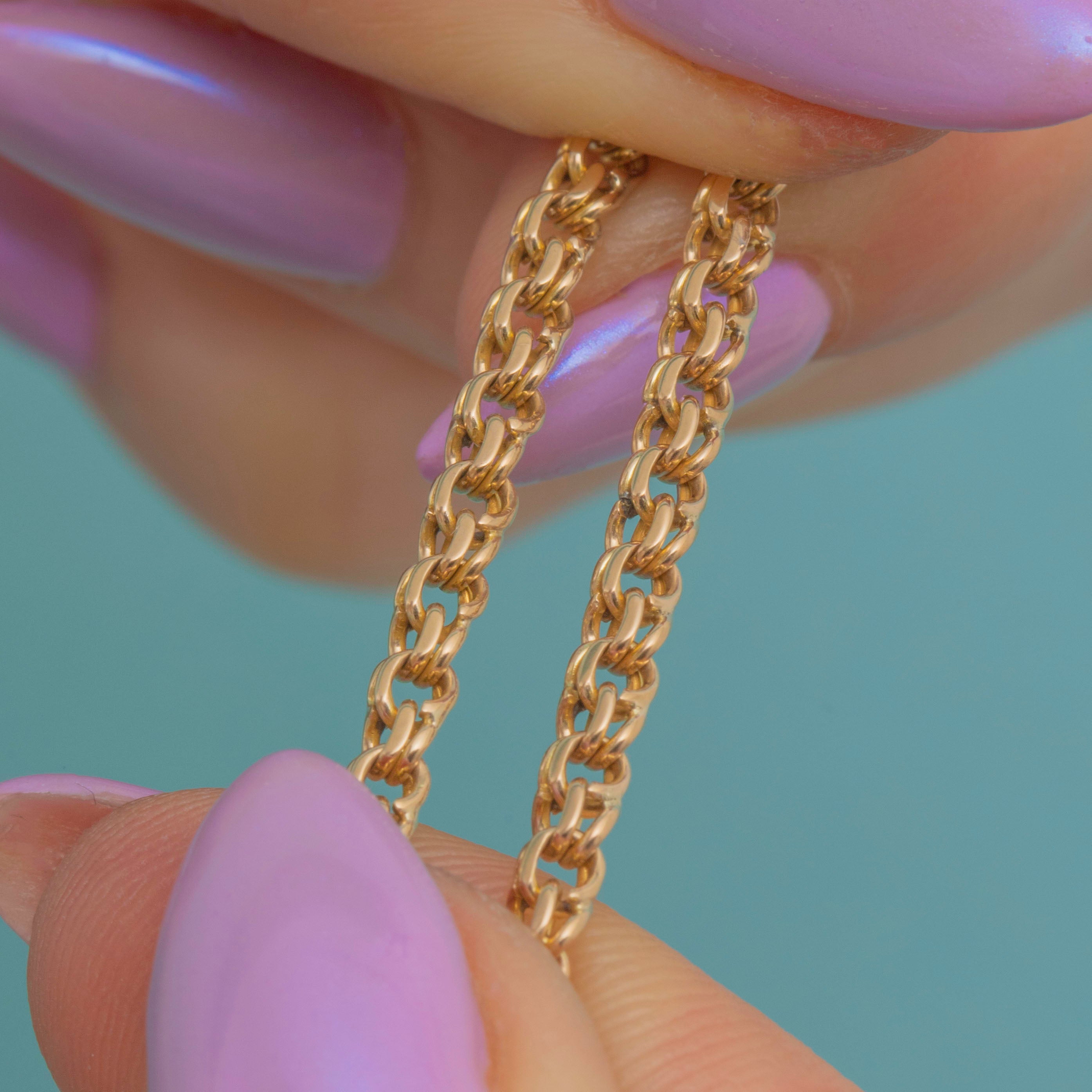 EXCELLENT. This 16" antique 9ct Gold fancy belcher link chain is in excellent condition. The links are all secure and the dog-clip is in perfect working order allowing you to wear it with absolute confidence!