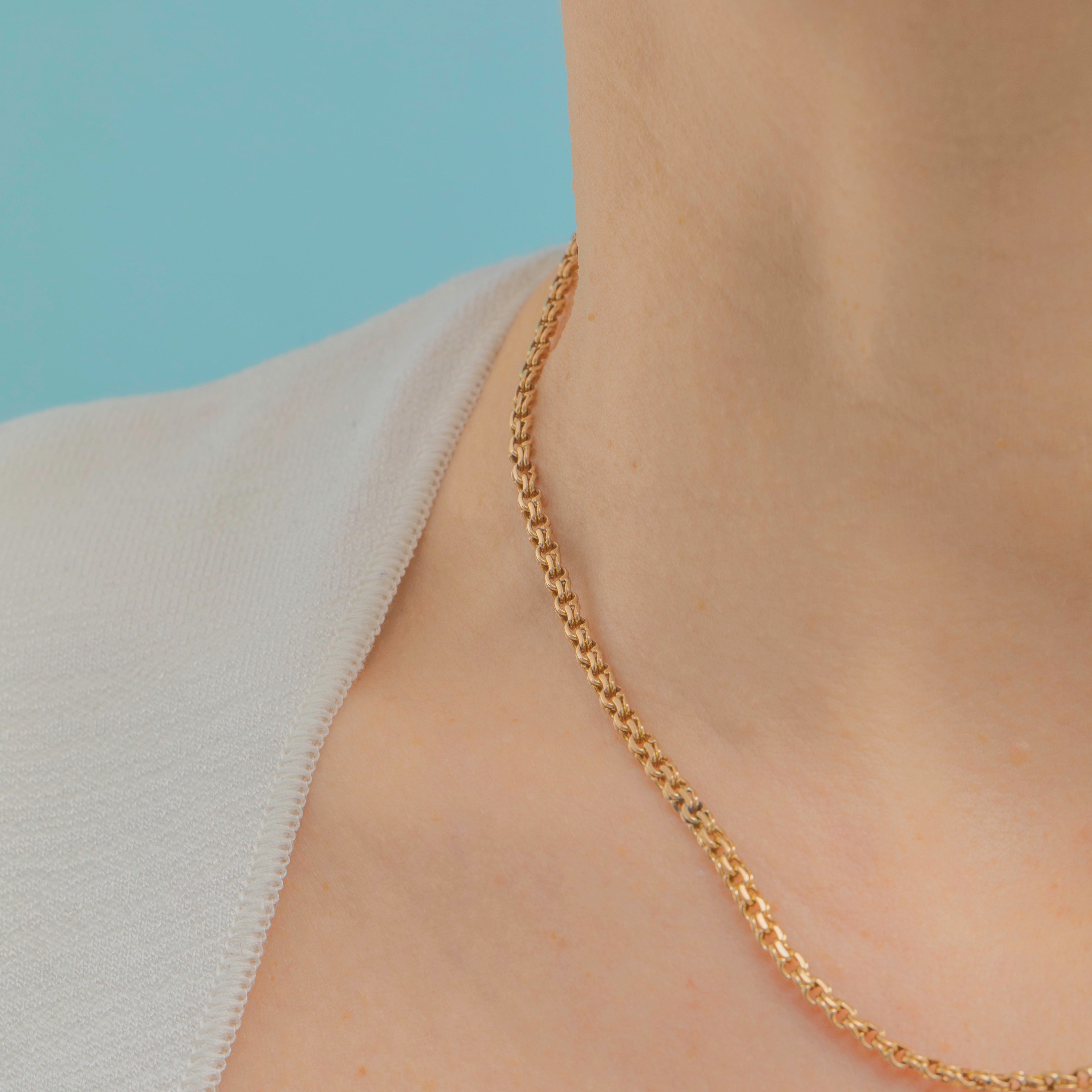 An everyday staple, this 16" chain boasts exquisitely crafted links that will catch the light beautifully as they rest across your collarbones. This Victorian chain comes complete with a dog-clip clasp from which you can suspend a charm or pendant for the ultimate antique look!