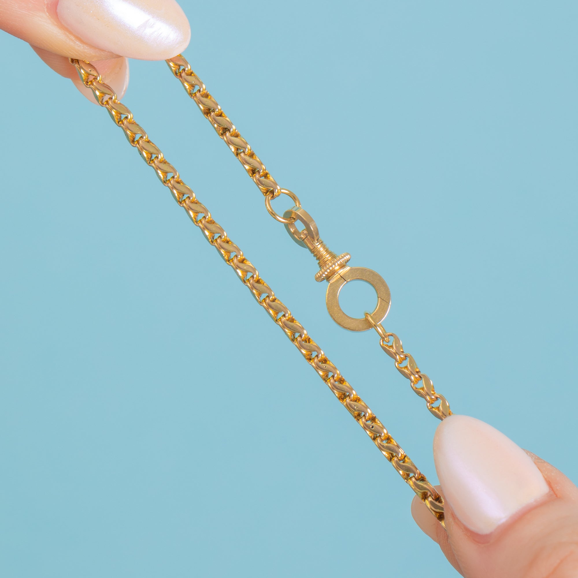 Exuding luxury and exquisite craftsmanship, this antique 9ct Gold tulip link chain is a fine investment piece and will provide you with ample styling opportunities! This Victorian Gold chain can be worn alone to add a satisfying flash of Gold to your attire, stacked in a curated neck-mess for a modern look, or you could suspend a charm from its highly coveted screw dog-clip clasp for a personal touch.