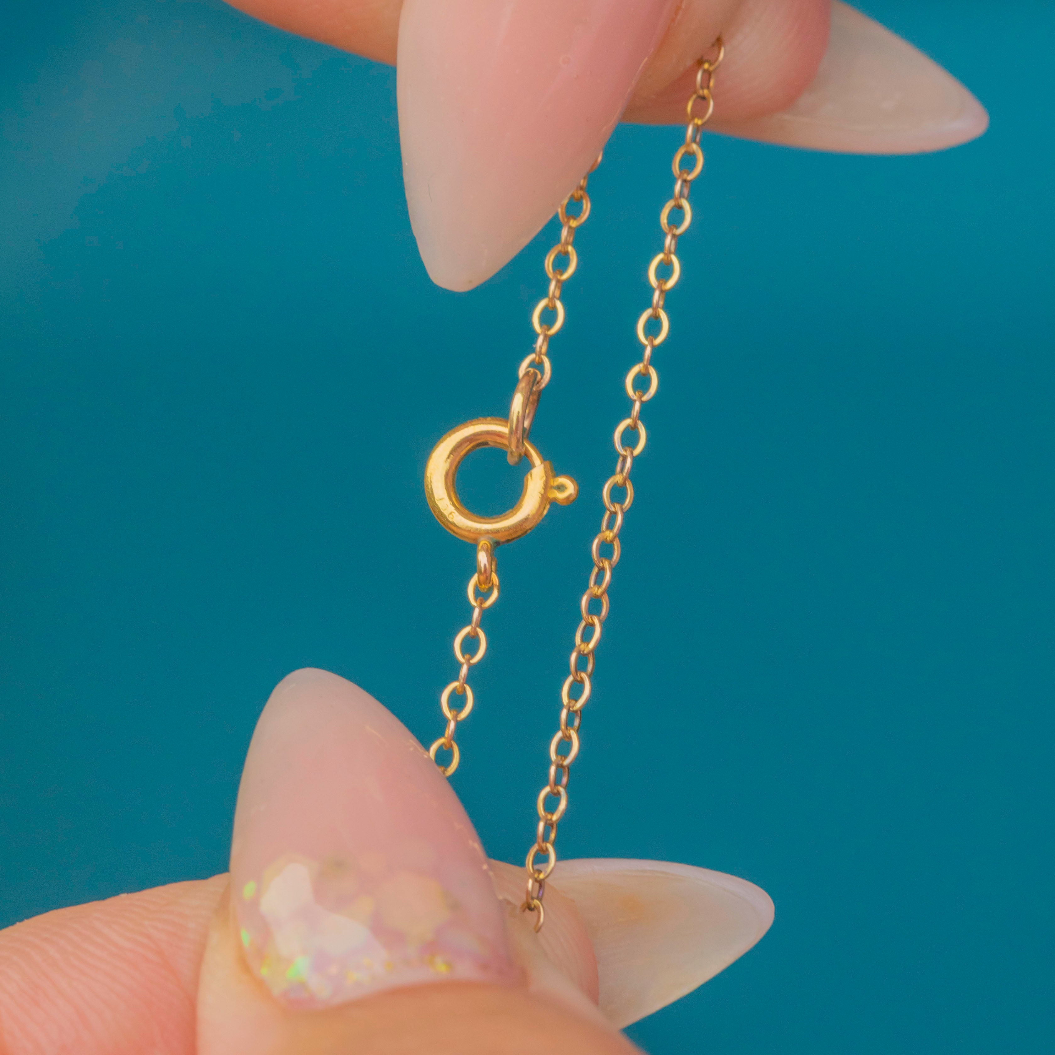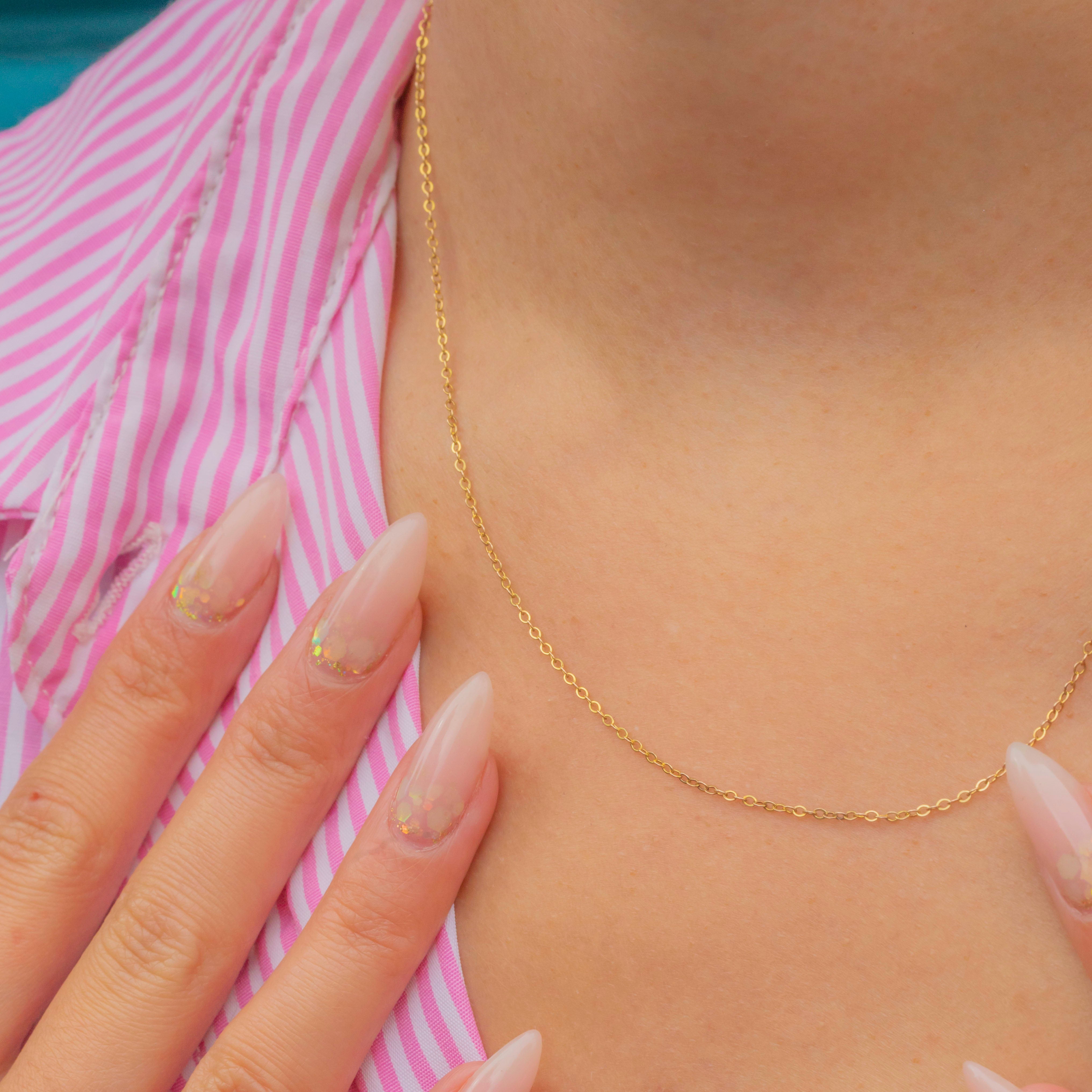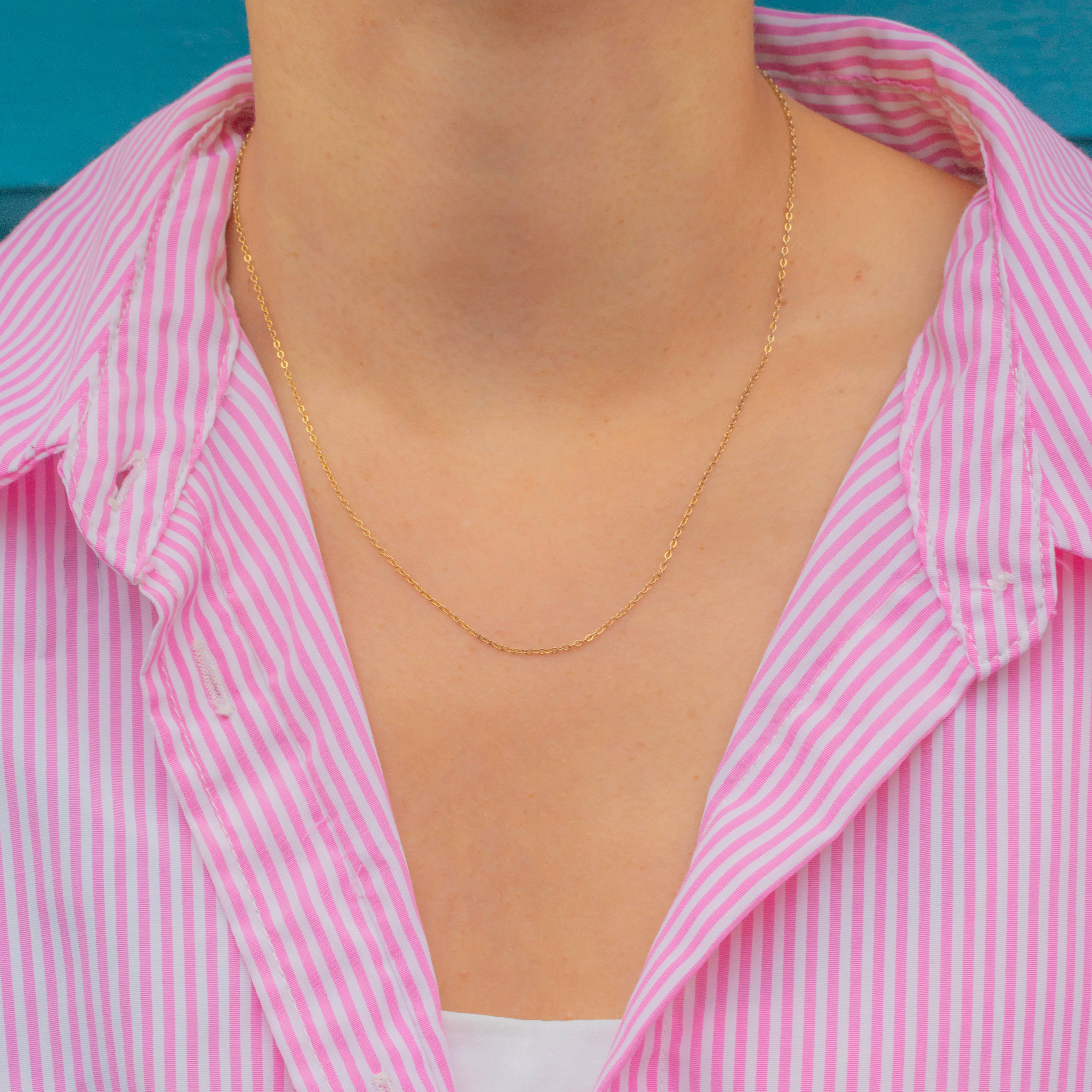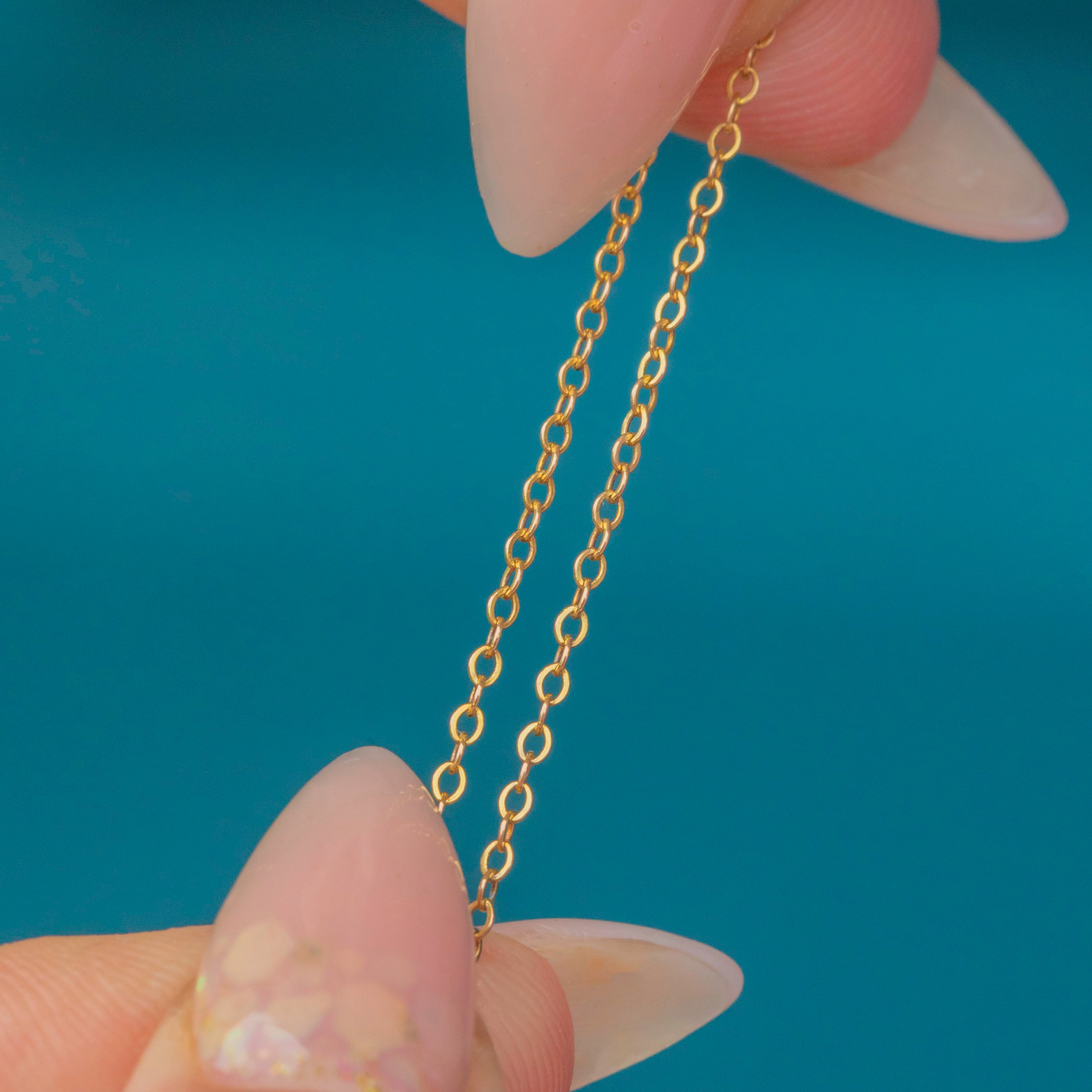 A fine 9ct Gold pendant chain, measuring 16" in length. With delicate 1.3mm links, it is lightweight yet strong, making it the perfect chain to showcase your favourite pendants and charms.