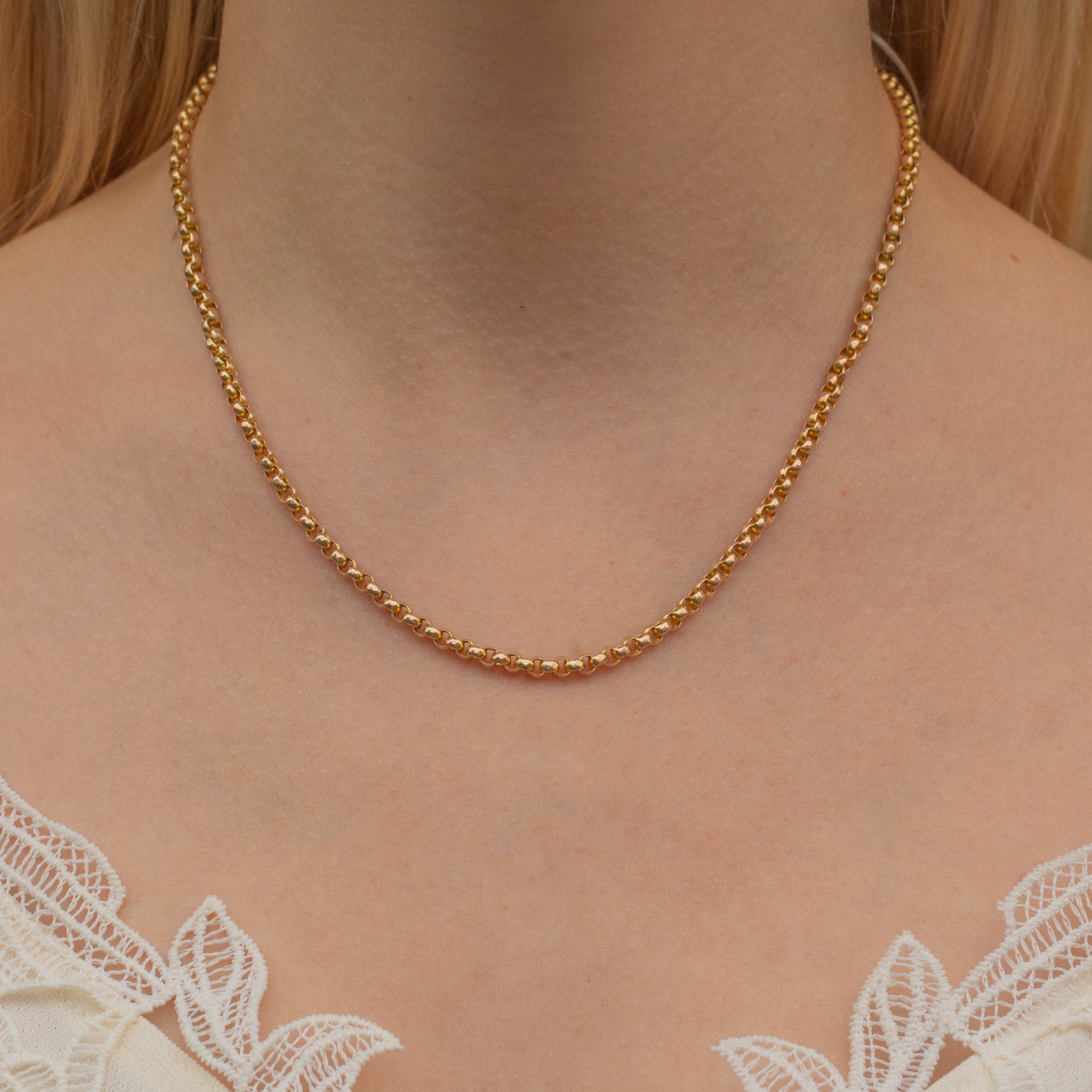 You can always count on a 17" antique 9ct Gold faceted belcher chain to make an outfit, taking you from wearing it to styling it!