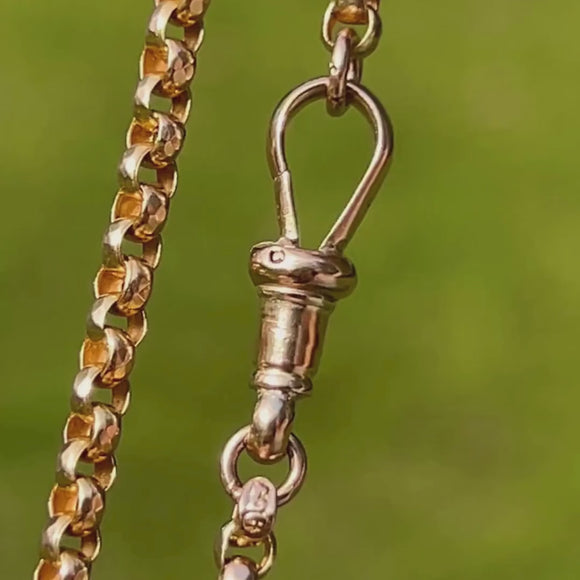 EXCELLENT. This 17" antique 9ct Gold faceted belcher chain is in excellent condition! The 9ct Gold has retained a rich buttery hue. The dog-clip is in perfect working condition allowing you to wear it with confidence!