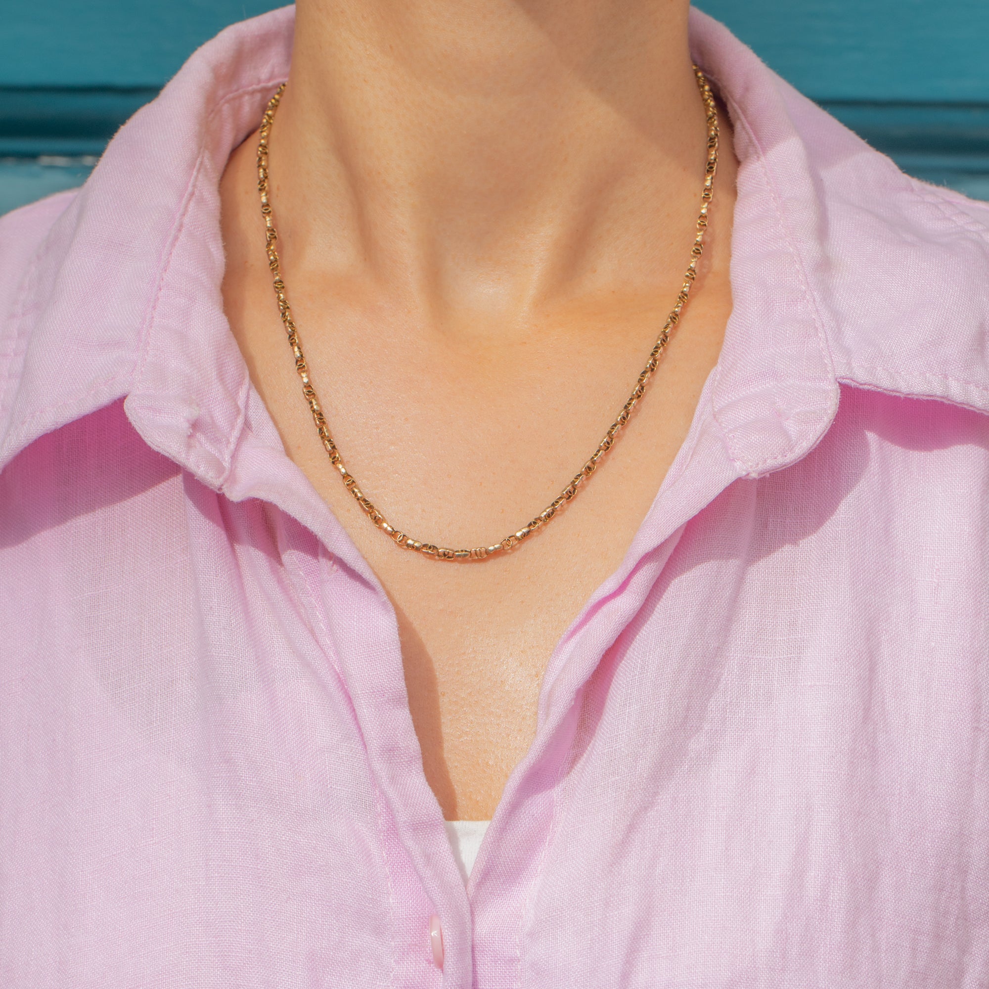 Measuring 17” long and weighing 5.2g, it’s a versatile antique chain with a secure bolt ring clasp, a timeless choice for daily wear or pairing with a pendant.