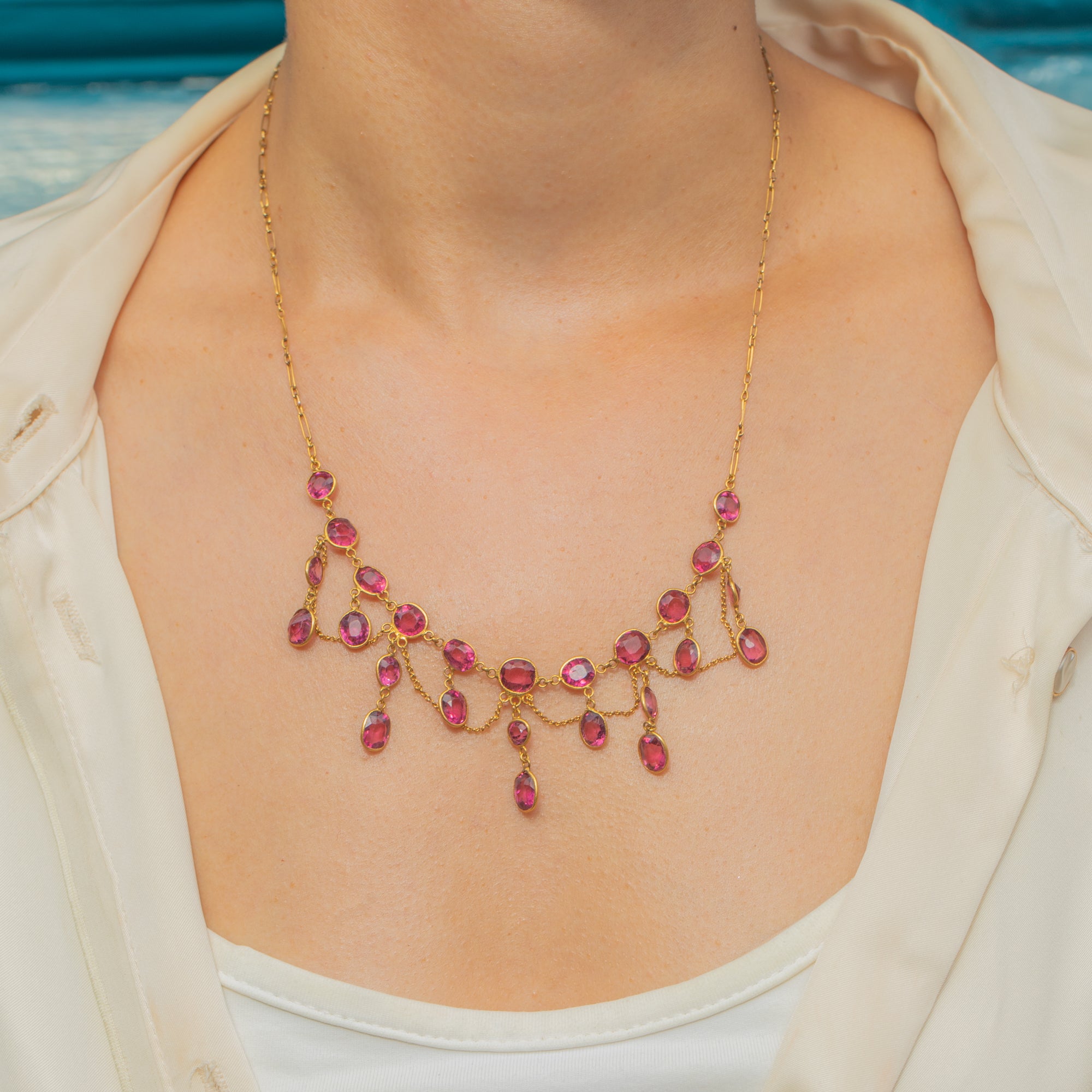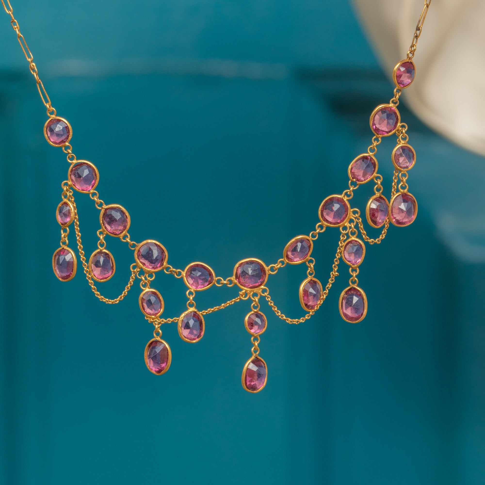 17" Edwardian 18ct Gold Rhodolite Garnet Festoon Necklace