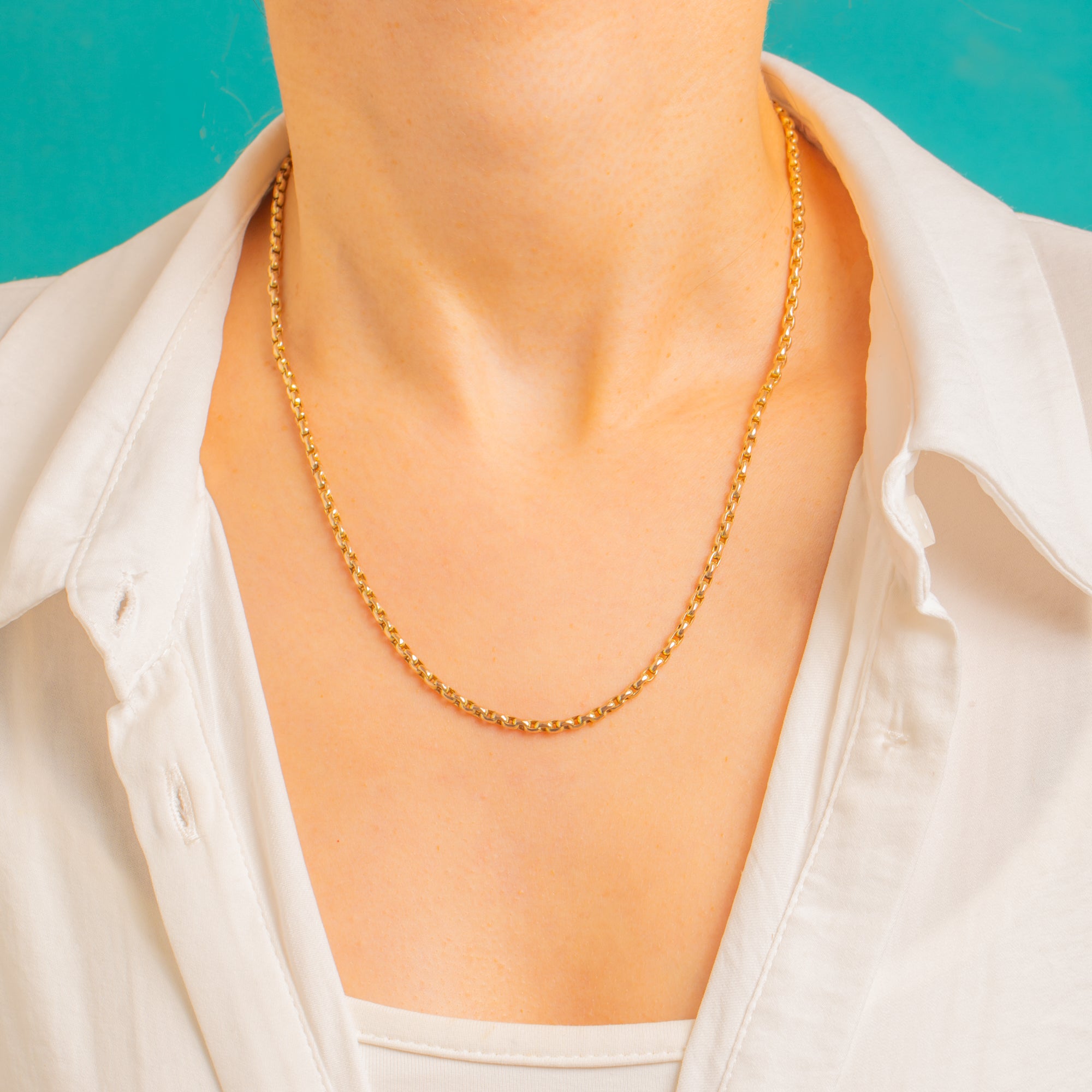 A timeless Victorian 9ct Gold chain, elegantly crafted with sleek, uniform links that catch the light beautifully. At 18 inches, it sits perfectly at the collarbone for effortless, everyday sophistication.