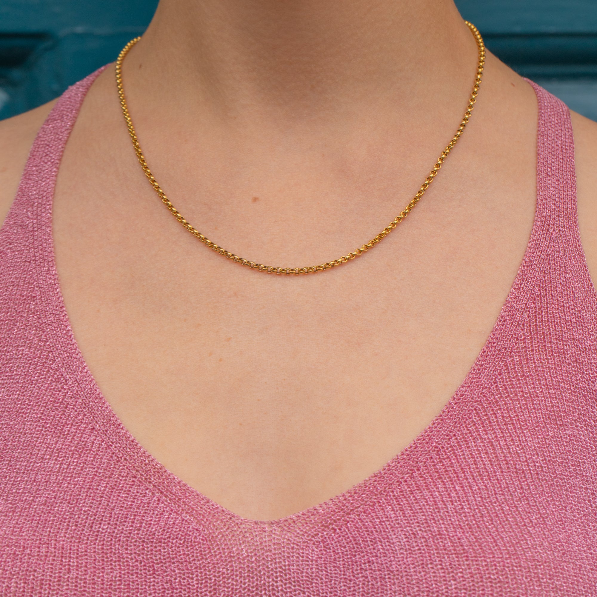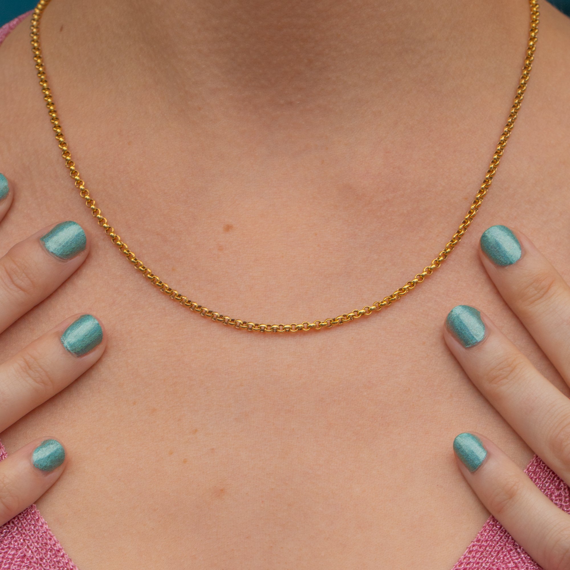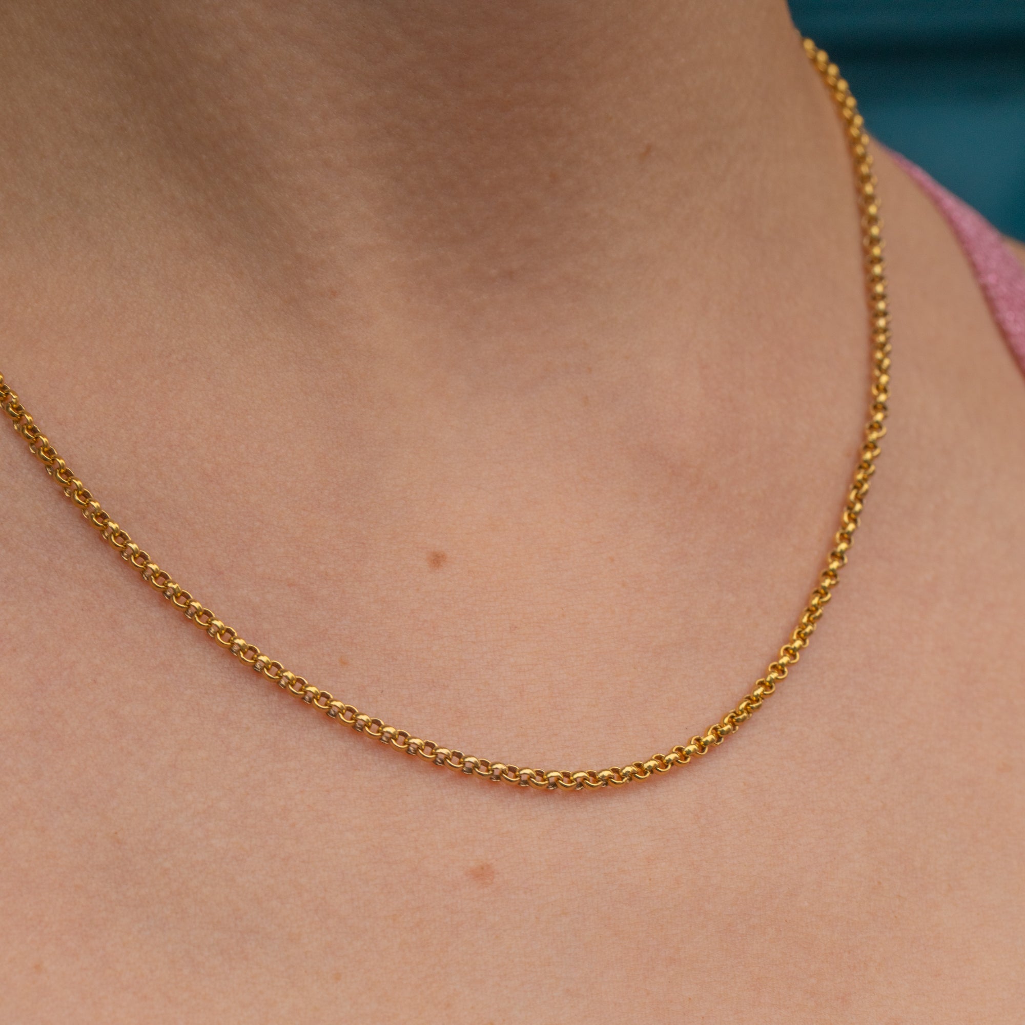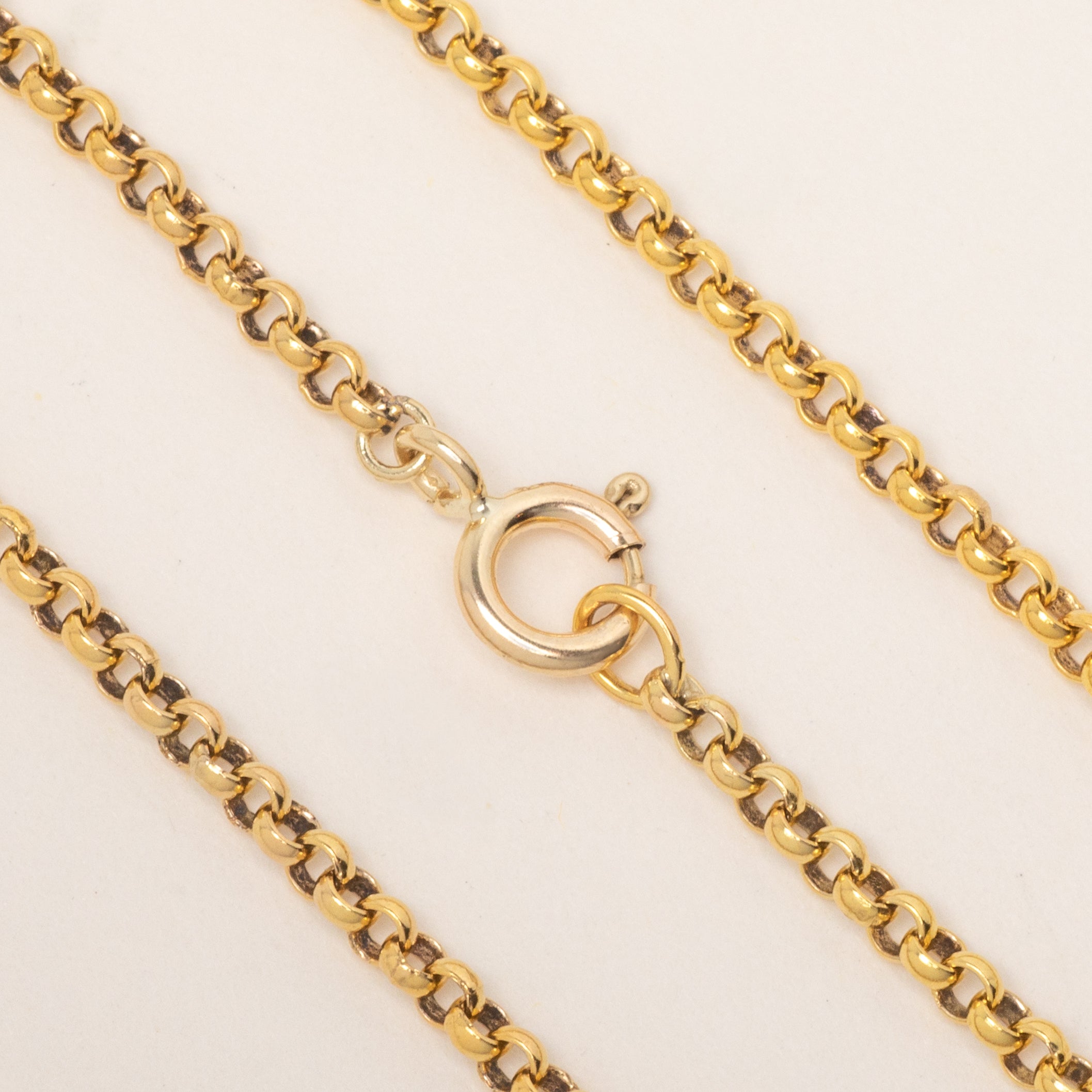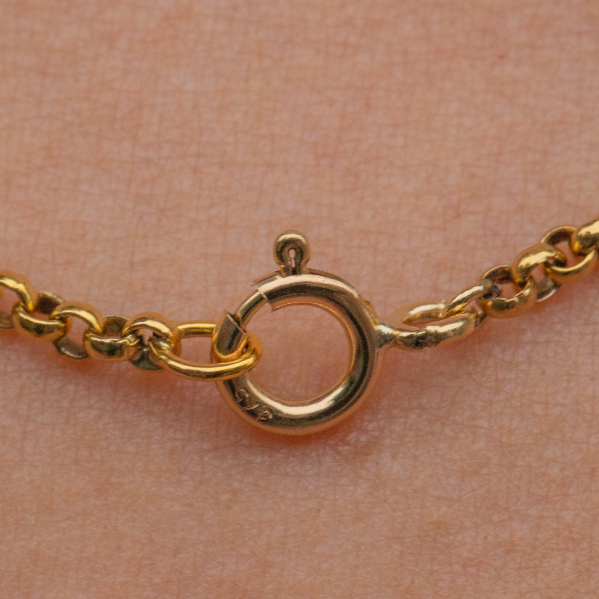 This 18" antique 9ct Gold belcher chain is set to become your new go-to piece! Dainty belcher links crafted from solid 9ct Gold make up the 18" length of this Victorian Gold chain, the perfect length for lending itself well to suspending a charm or pendant across your clavicles.