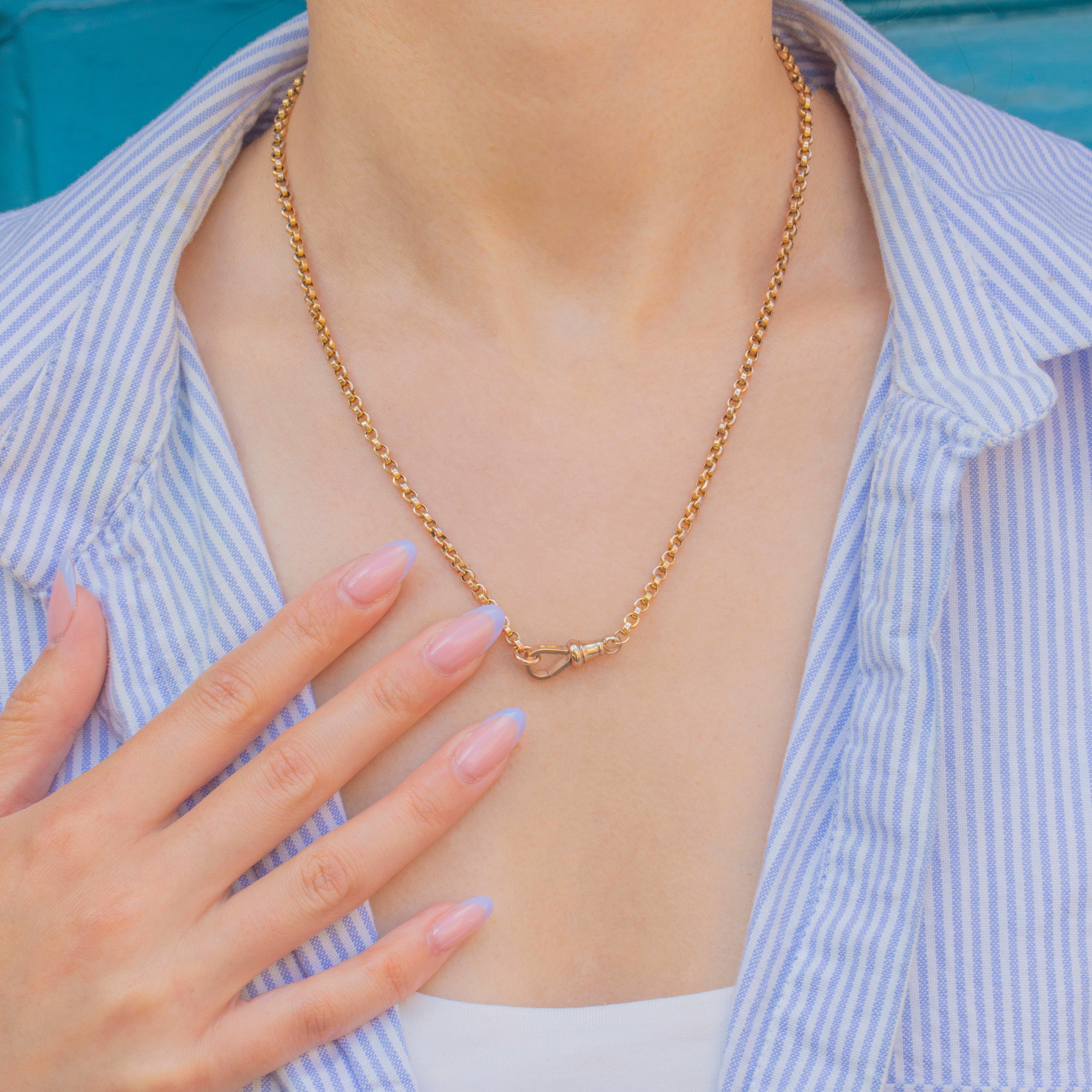 Complete with an adorable dog-clip, which you can customise with a small charm or pendant, this Victorian 9ct Gold chain is brimming with antique charm.
