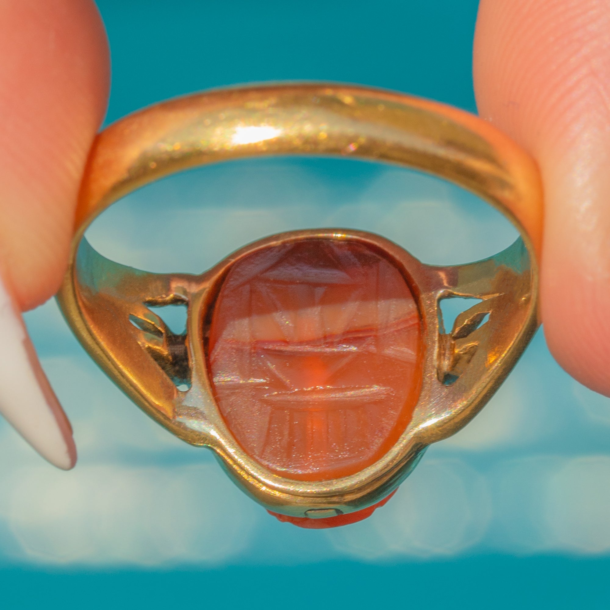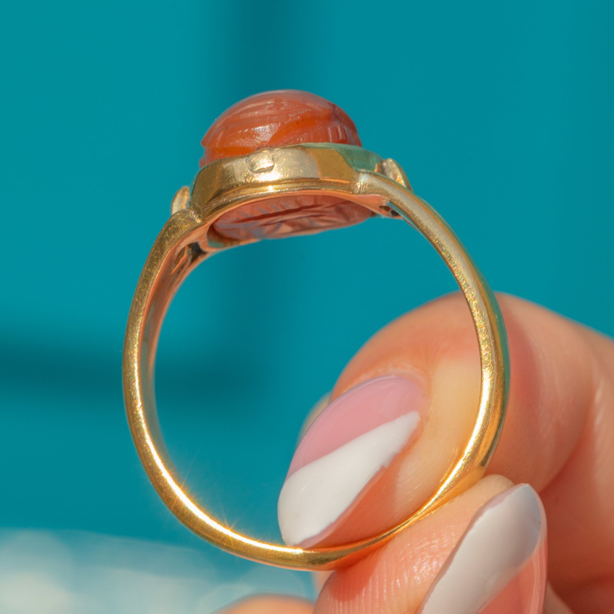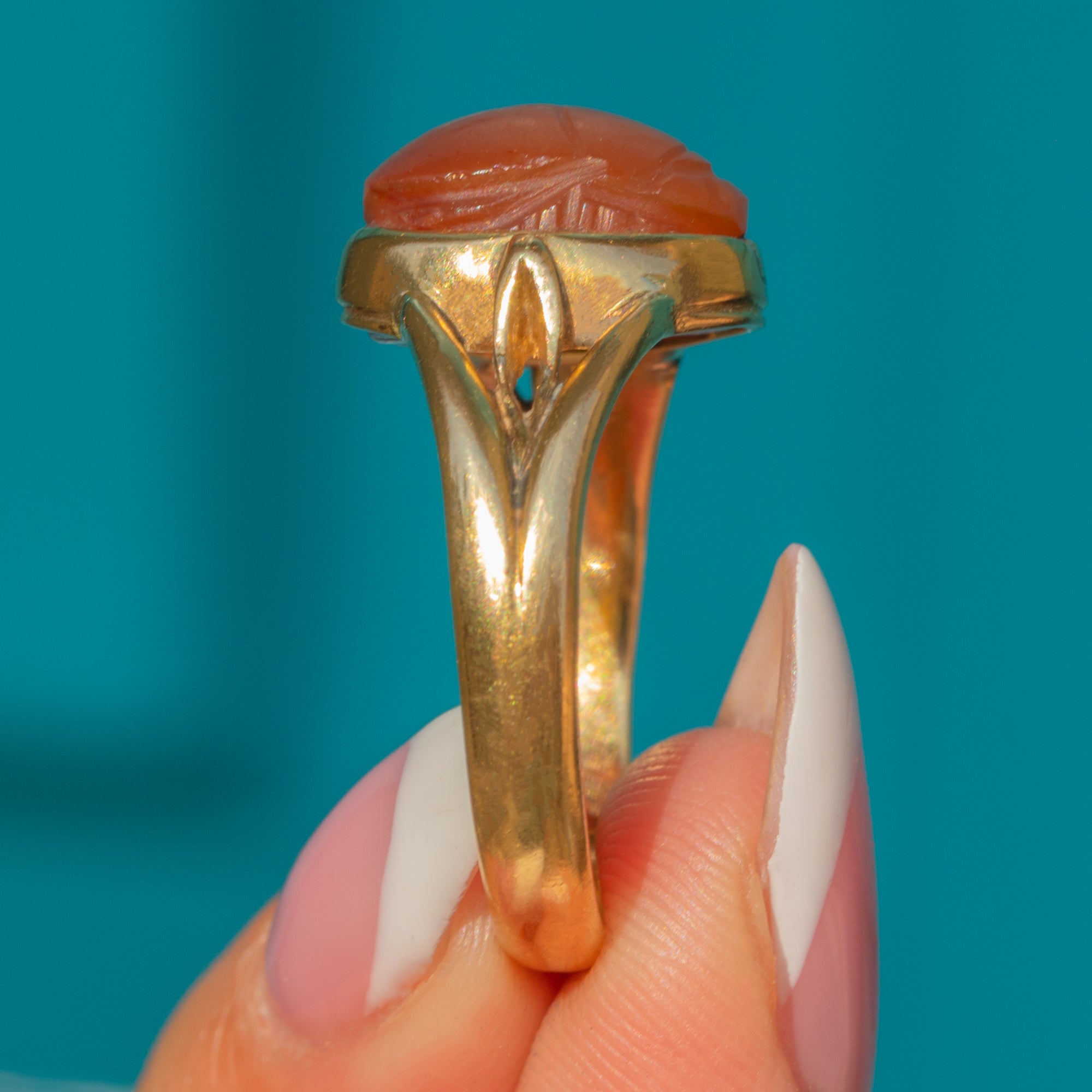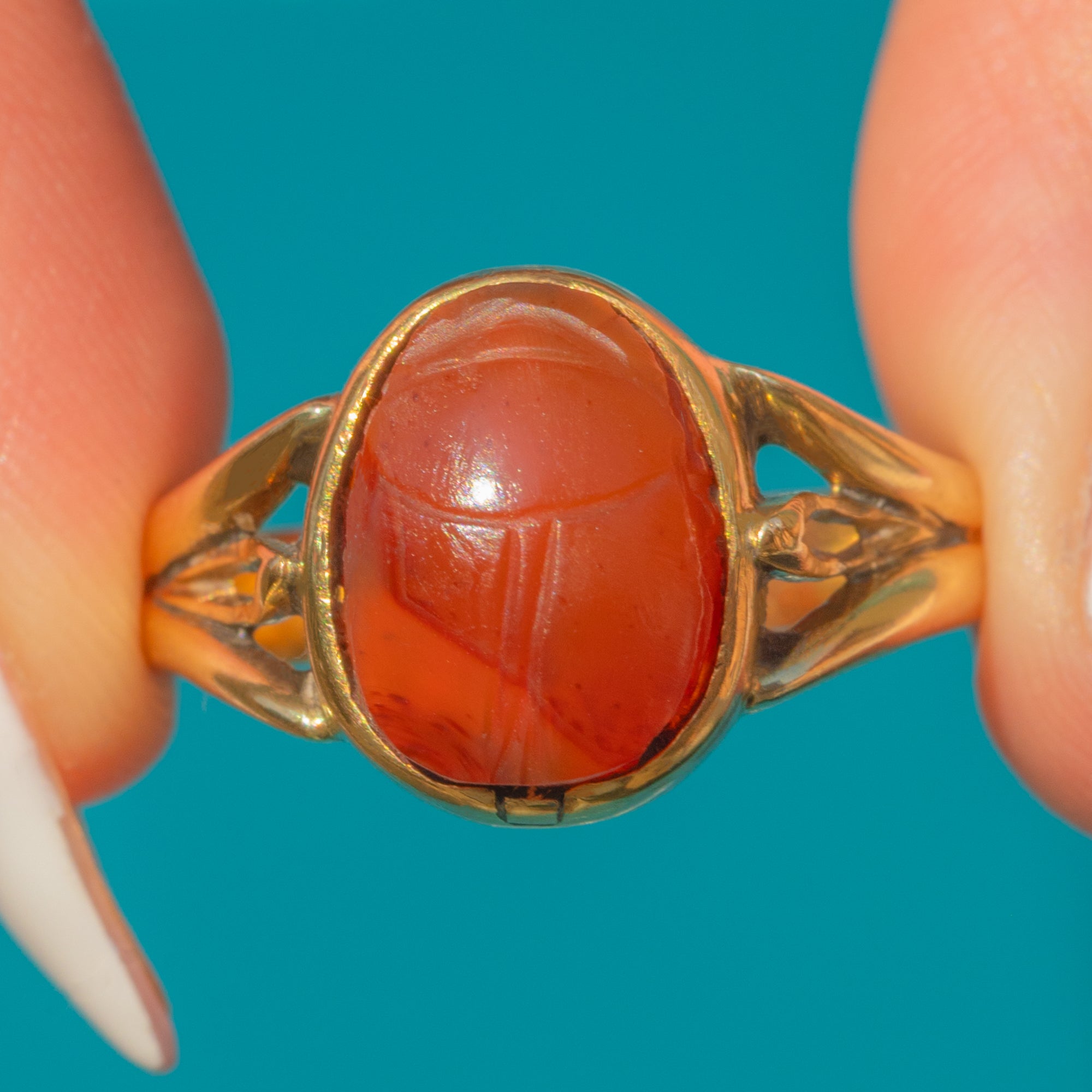 18ct Gold Archaelogical Revival Agate Scarab Ring