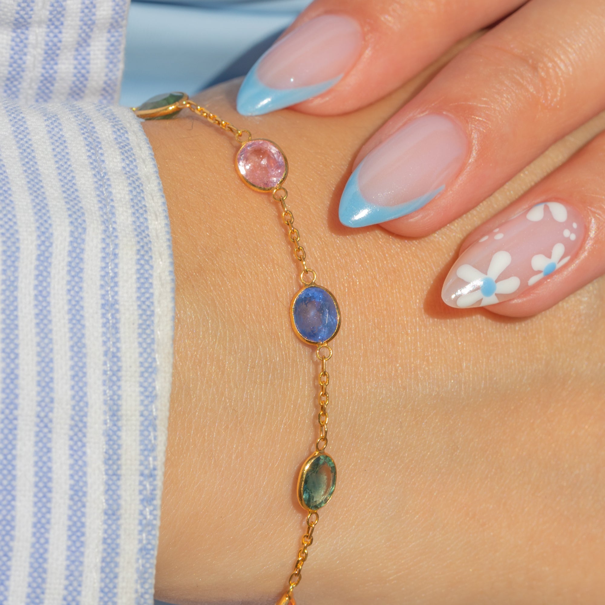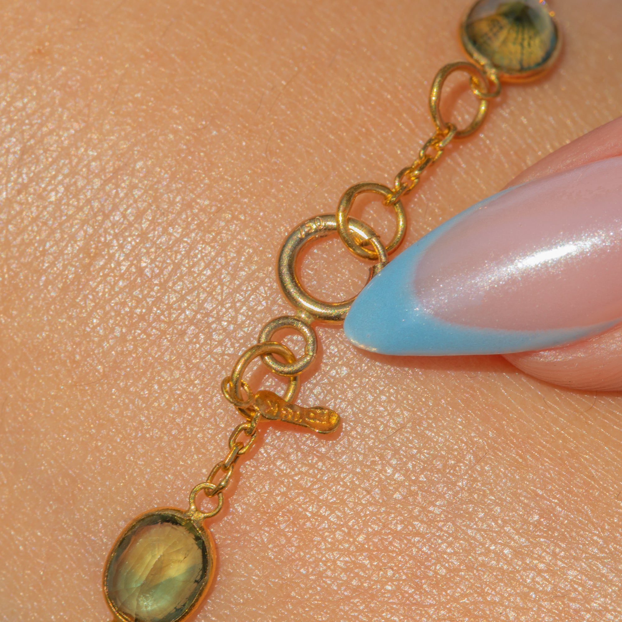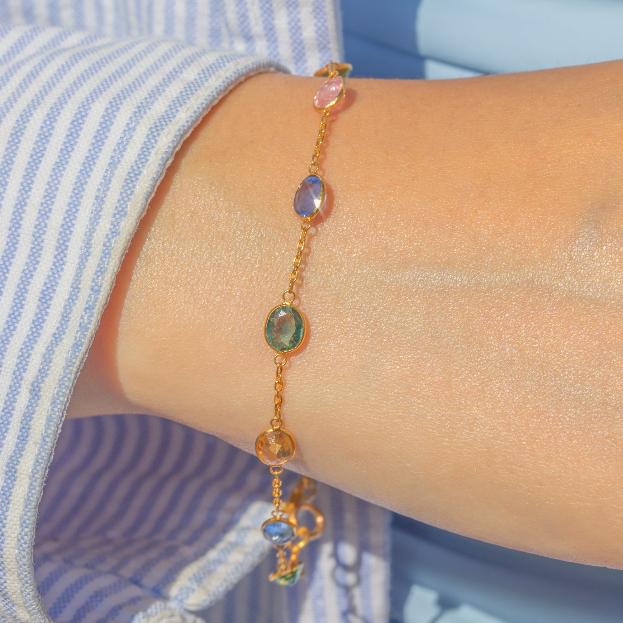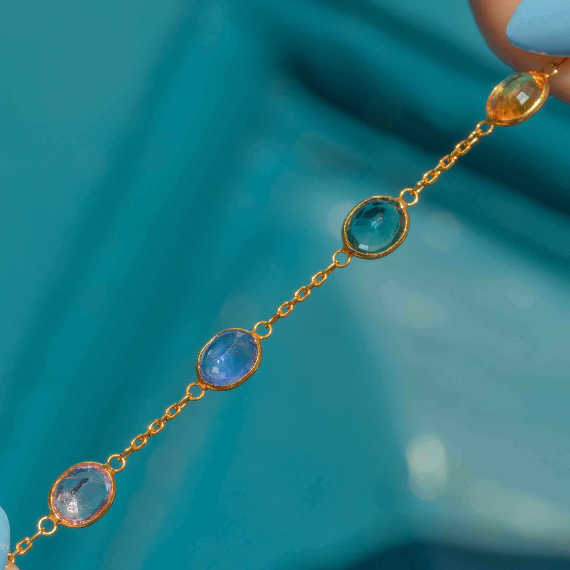 EXCELLENT: Each natural Sapphire is radiant and possesses its uniquely distinct colour palette, set securely within its bezels. The chain is uniform and secure and with a fully functioning bolt ring, this bracelet can be worn with utmost confidence.