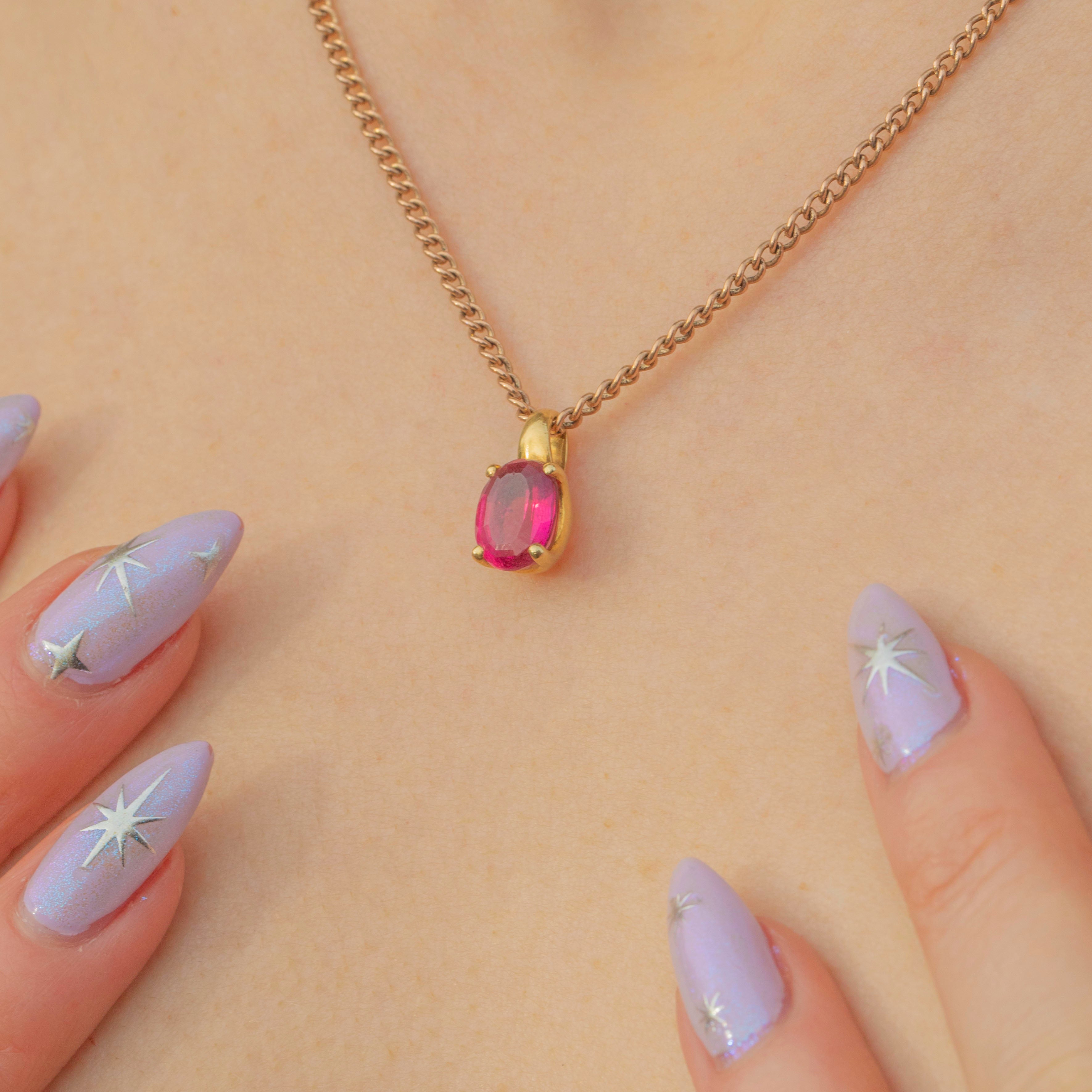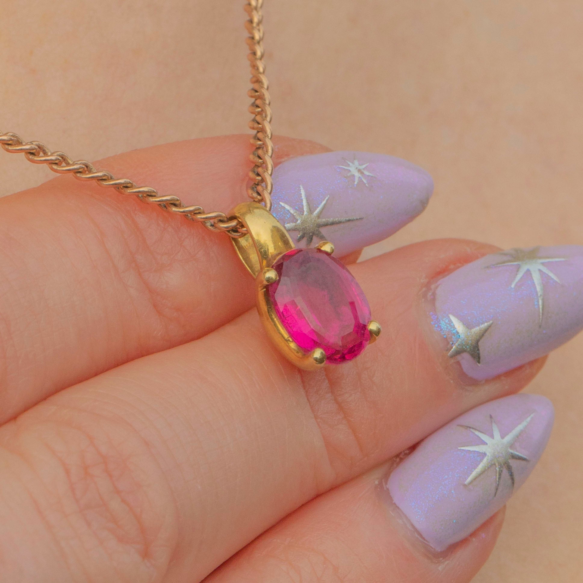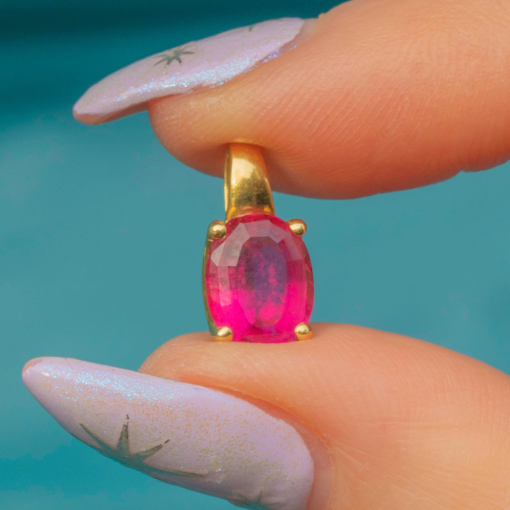 This 18ct Gold Pink Tourmaline charm is the perfect little treasure! The 1.96ct Tourmaline glimmers with a hot pink hue and is displayed within a smooth and curvaceous 18ct Gold setting.