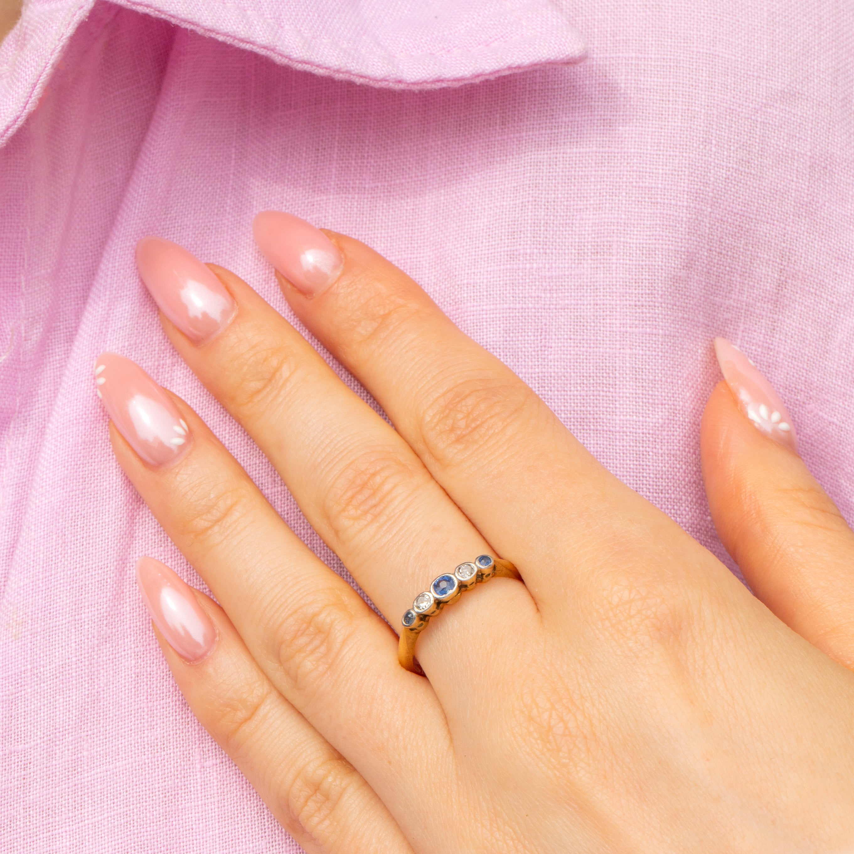 18ct Gold & Platinum Sapphire Diamond Five Stone Bezel Set Ring