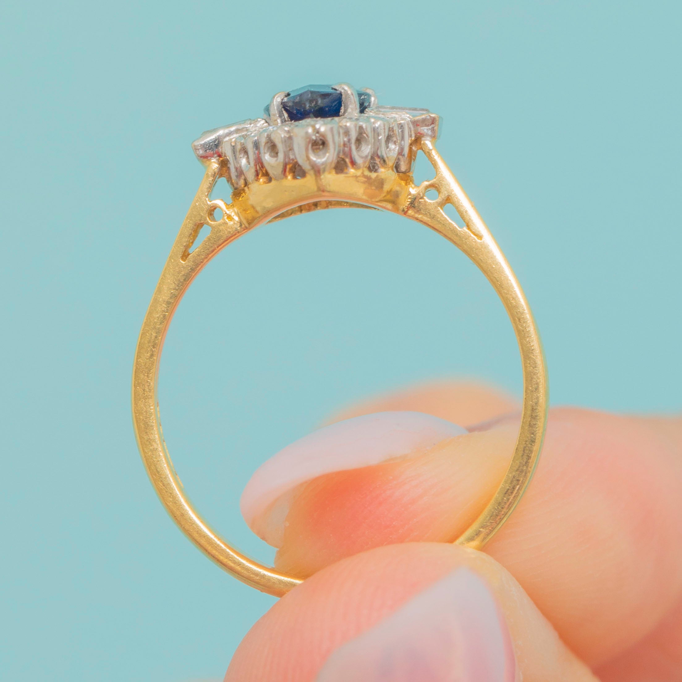 Vintage 18ct Gold Sapphire Diamond Heart Cluster Ring