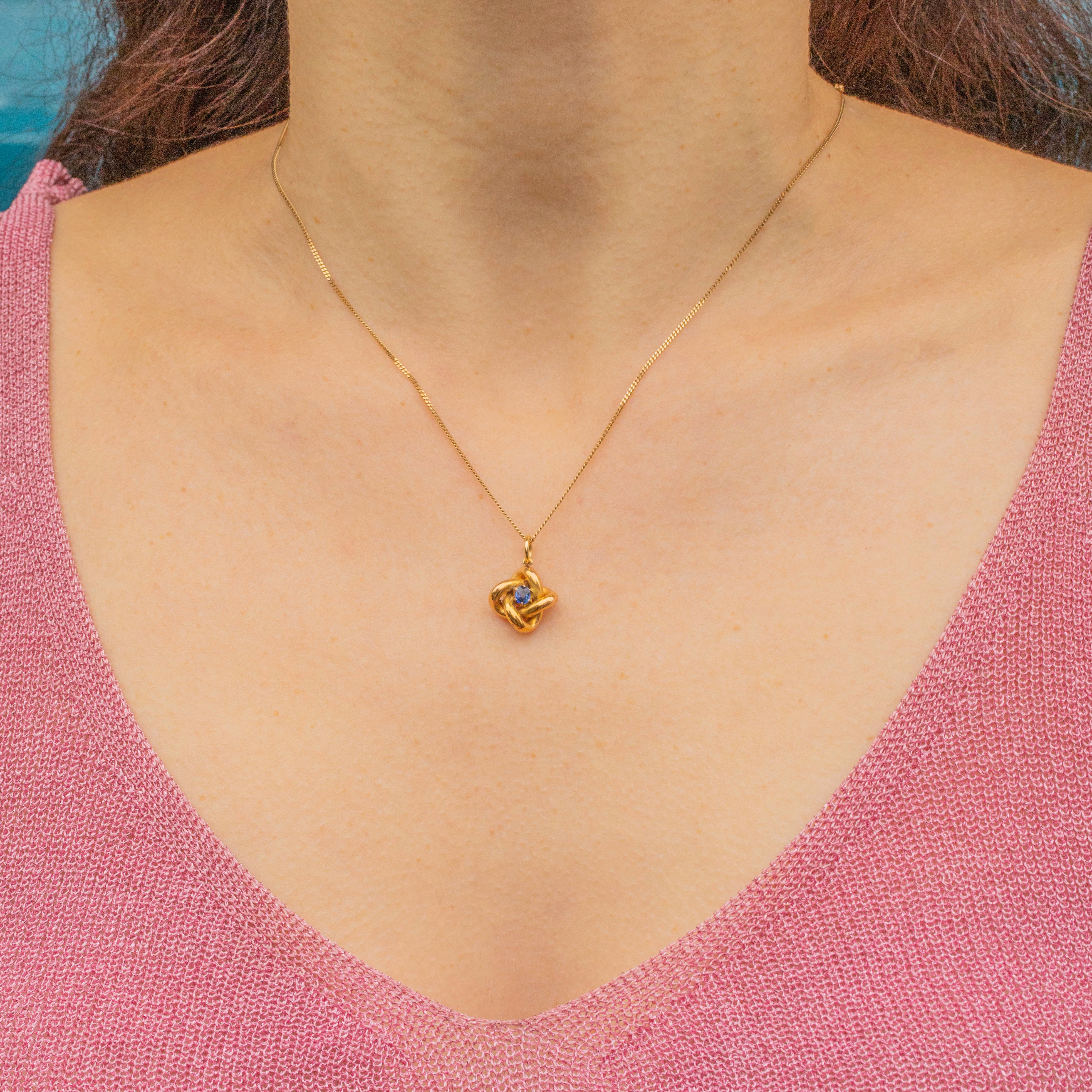 VERY GOOD-EXCELLENT. This 18ct Gold Sapphire knot charm is in very good condition. The Sapphire is securely set and free from damage, and the twist design is fully intact. There is minor surface wear on the back of the charm, however, this is not visible during wear. With plenty of life left in her, you can enjoy her for decades more!