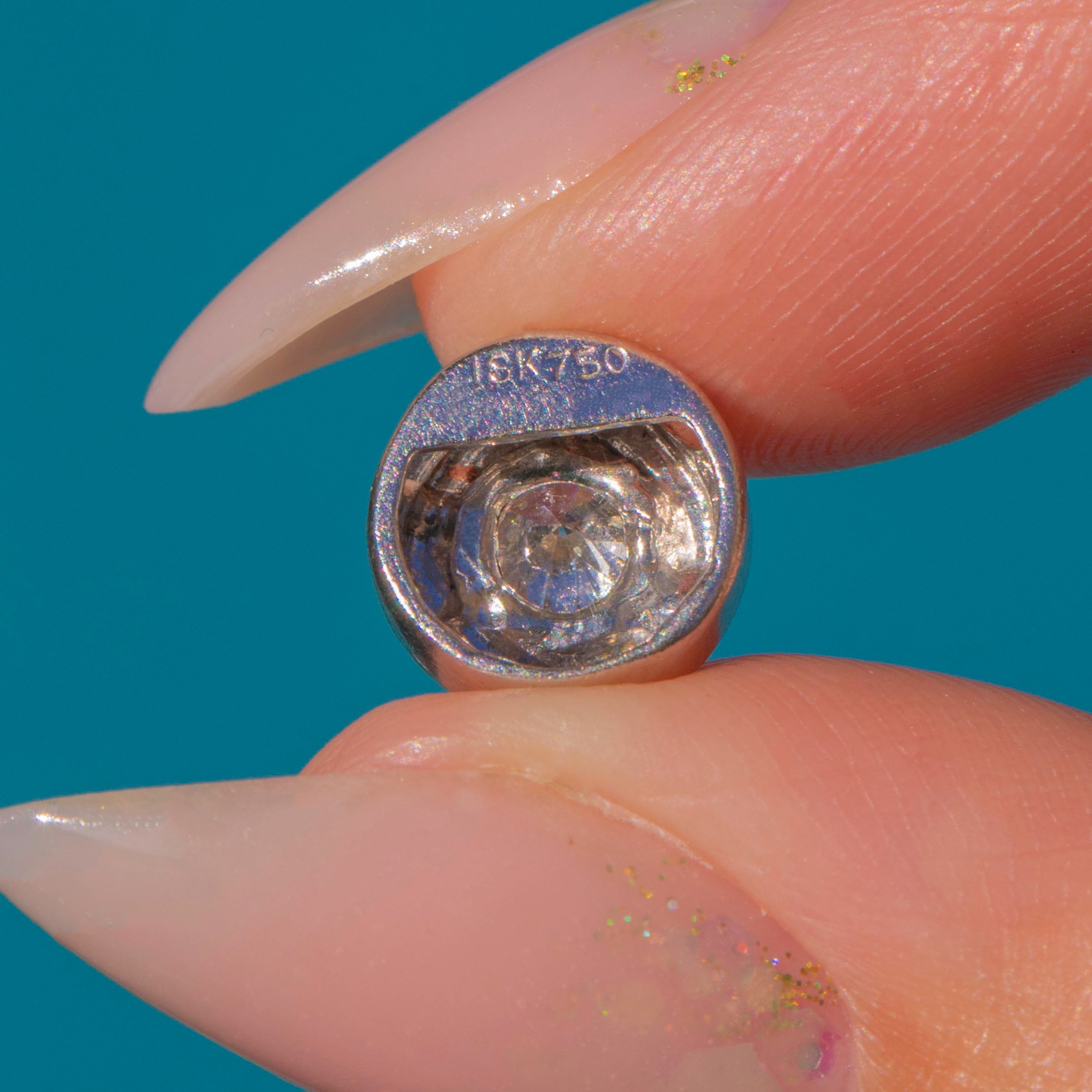 The open channel through the side allows the piece to slide freely onto a fine chain or bracelet, perfect for stacking or everyday shine. Stamped “18k” and “750”, it’s a versatile little luxury you’ll reach for time and again.