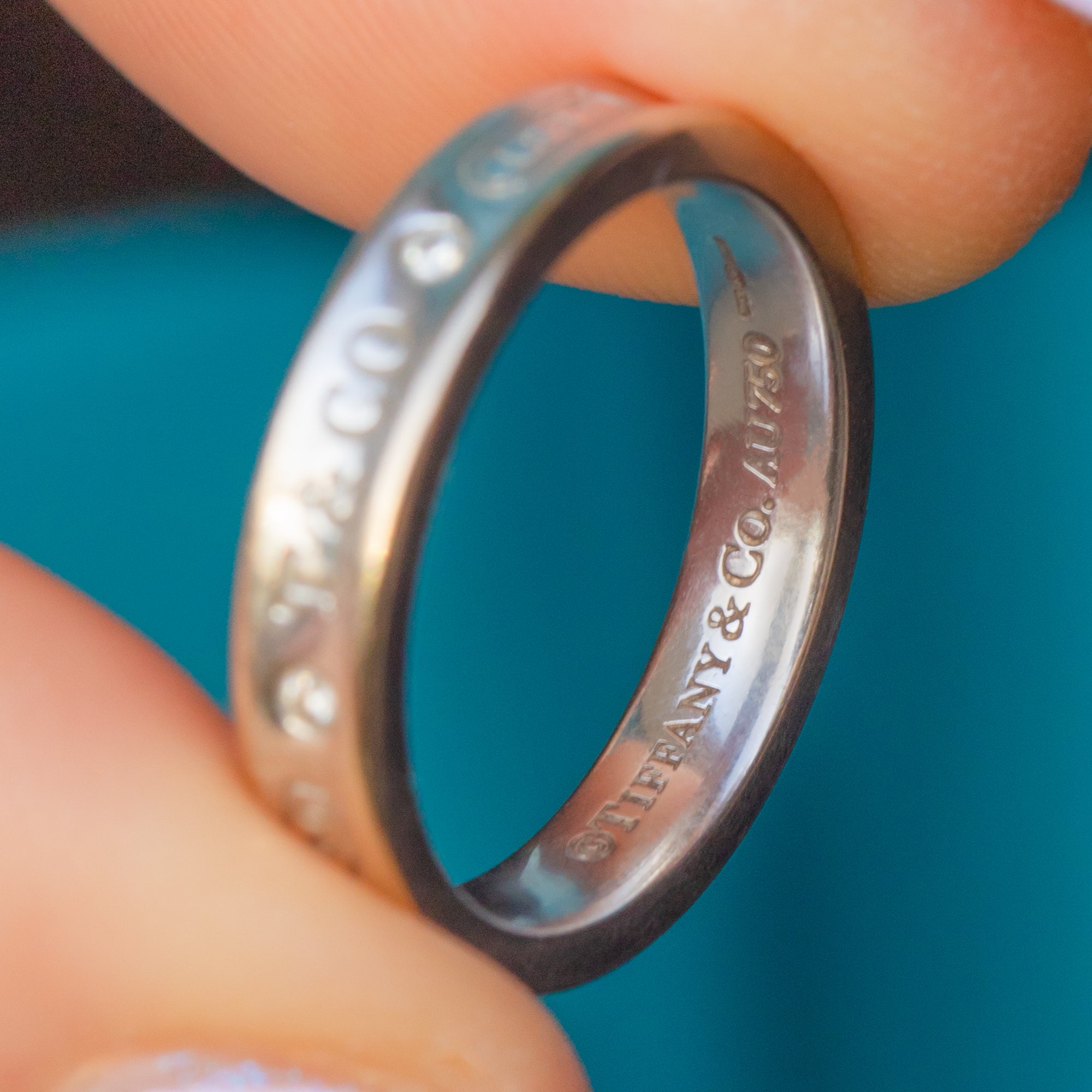 This 18ct White Gold Tiffany & Co Diamond set ring will be a prized possession in your jewellery collection! This vintage Gold band features a stamp of "1837" Tiffany, to mark the year Tiffany & Co was founded, making it a collectible piece!