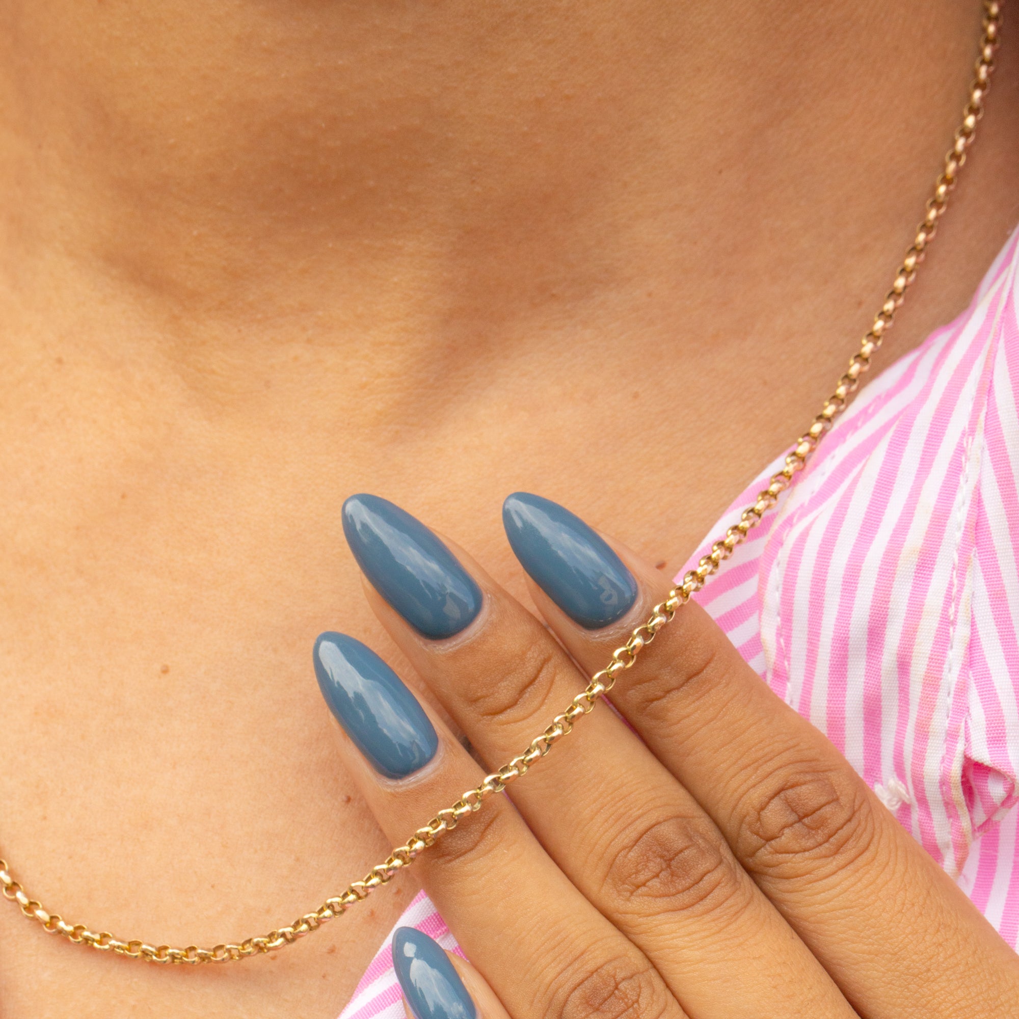 Fastened with an antique Gold dog-clip, you could make her the main feature and suspend a dainty charm from her as she sits around your neck. At a slightly longer length of 19.5 inches, this antique Gold chain sits at the lower area of your chest, making her perfect for stacking amongst a curated neck-mess!