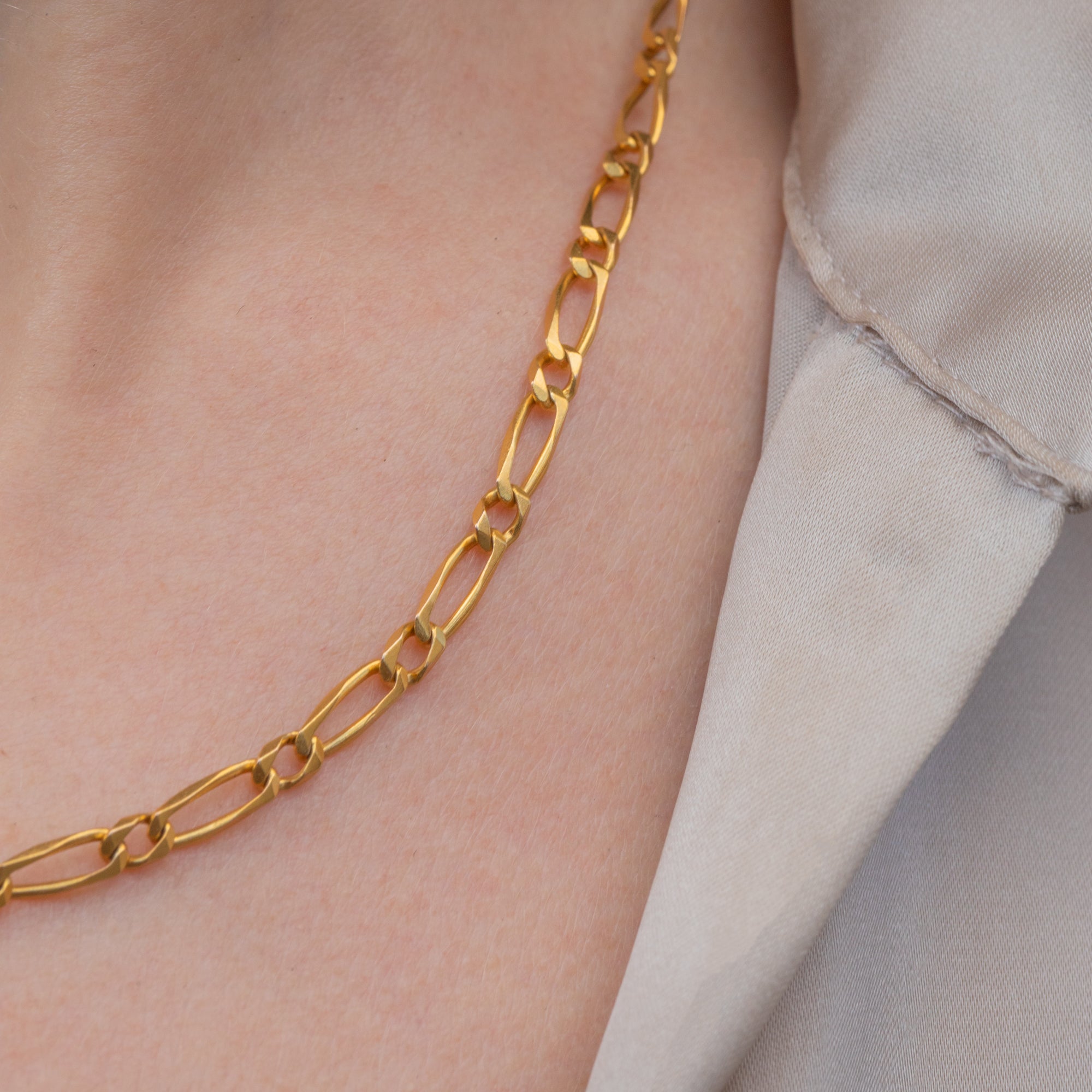 French Gold provides a glow that no other can, with this 19" antique 18ct Gold French Figaro chain being no exception! Fabulous and French her 19 inch length is formed of faceted figaro links, effortlessly falling against your décolletage.