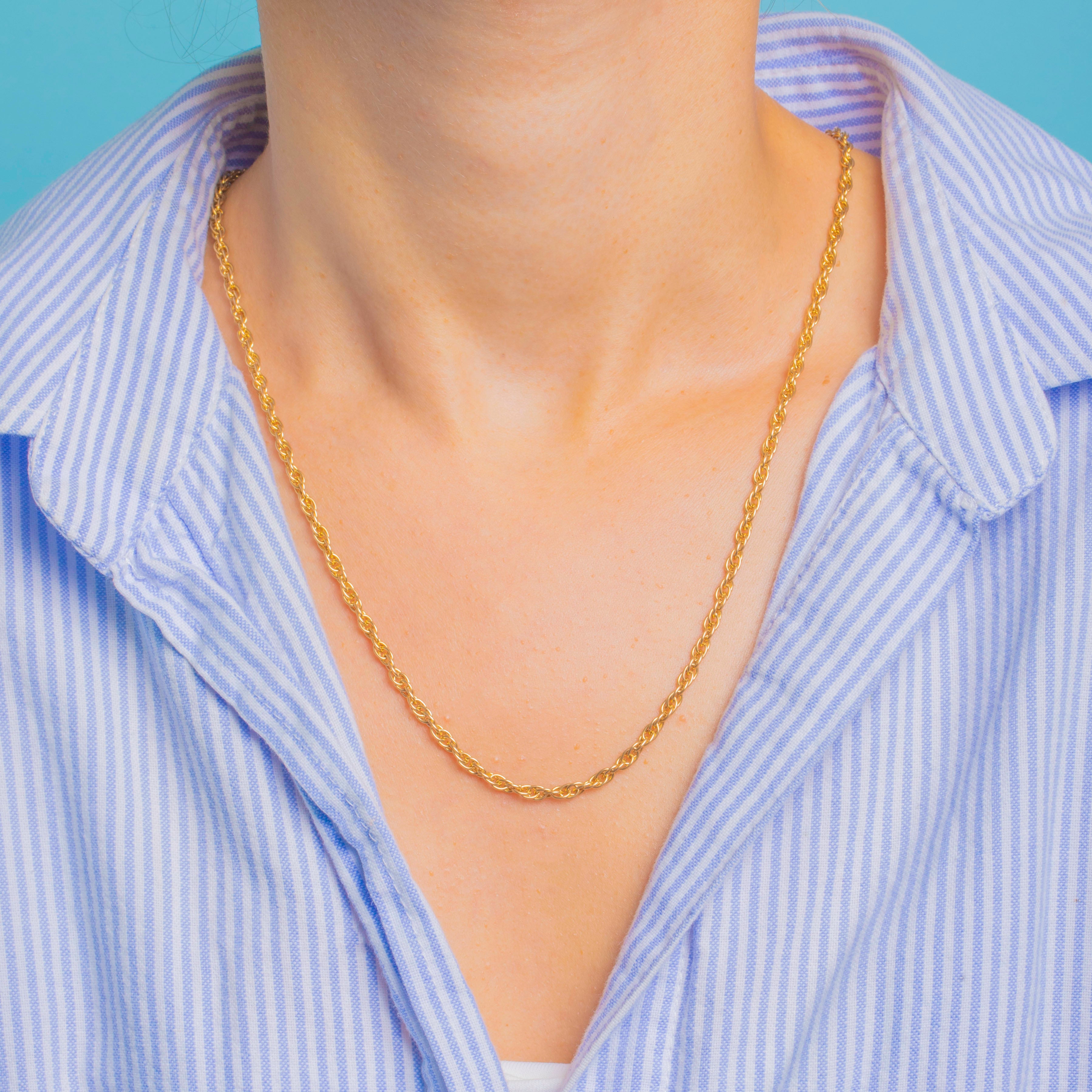 A timeless Mid-Century 9ct Gold rope chain with rich golden lustre and beautifully twisted links that catch the light with every movement. The intricate rope design offers wonderful texture and depth, perfect worn alone or layered with your favourite pendants and lockets.
