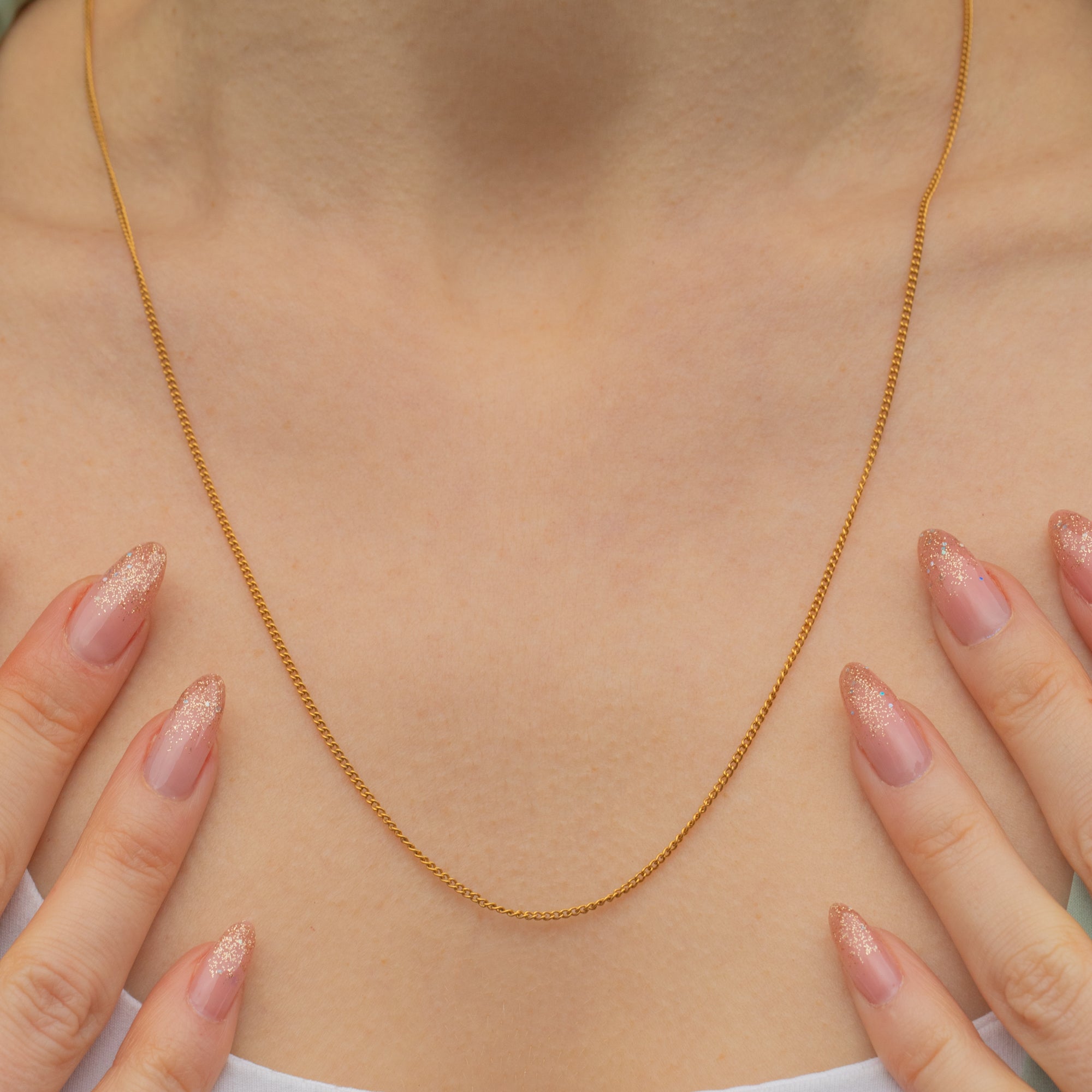 This 22" 9ct Gold Skinny Curb Link Chain is a must-have for any jewellery lover. Crafted from a bright, buttery 9ct Gold, she is a lightweight and slinky treasure.