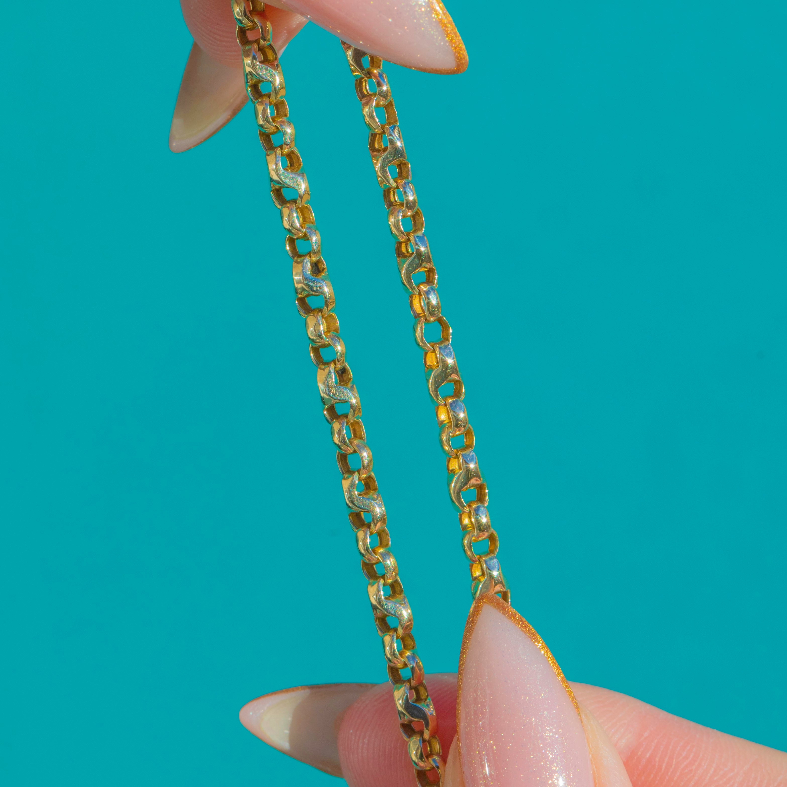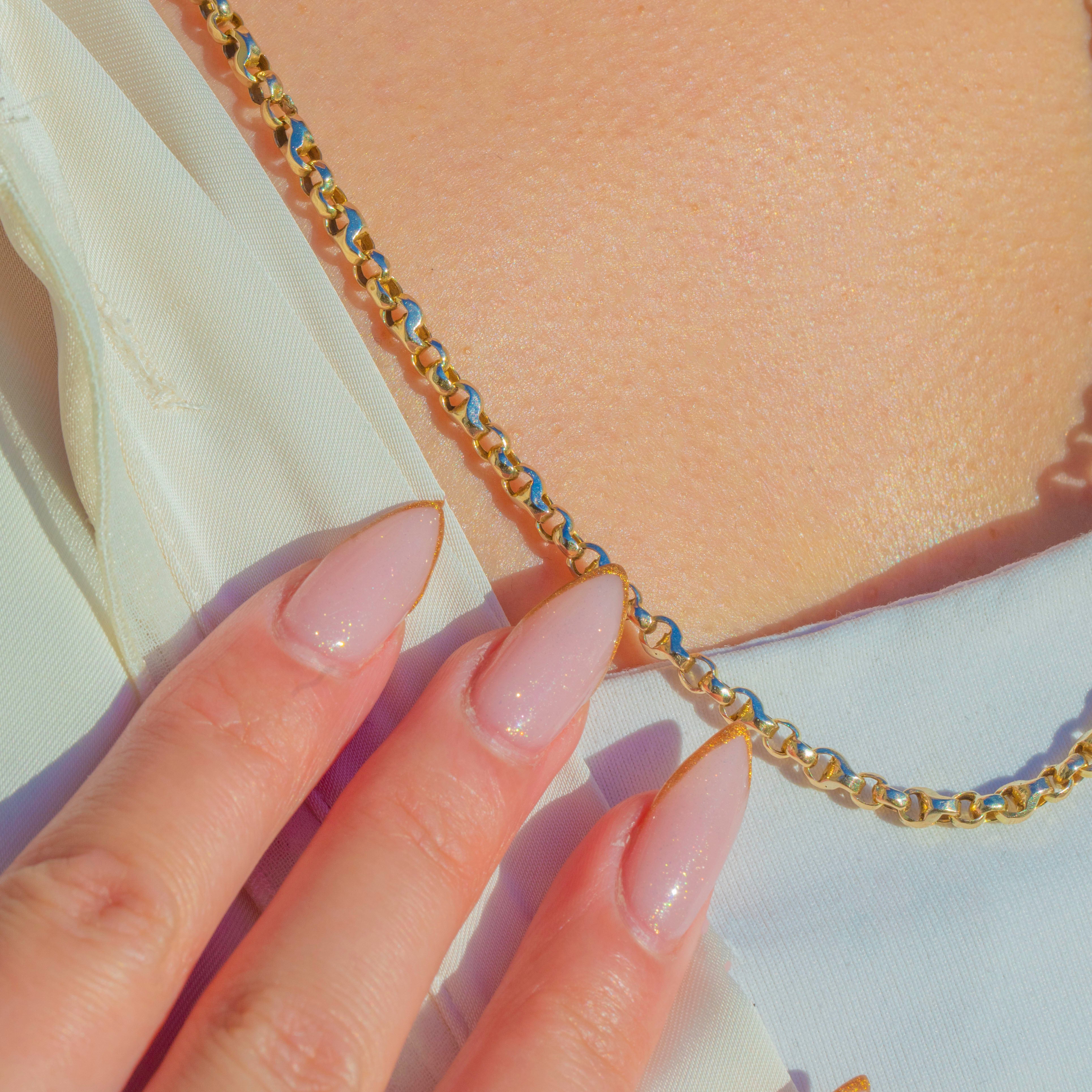 A beautiful Victorian 22" faceted belcher and tulip-link necklace crafted in solid 9ct Gold. The alternating links catch the light with a subtle sparkle, giving the chain a refined yet characterful antique feel.