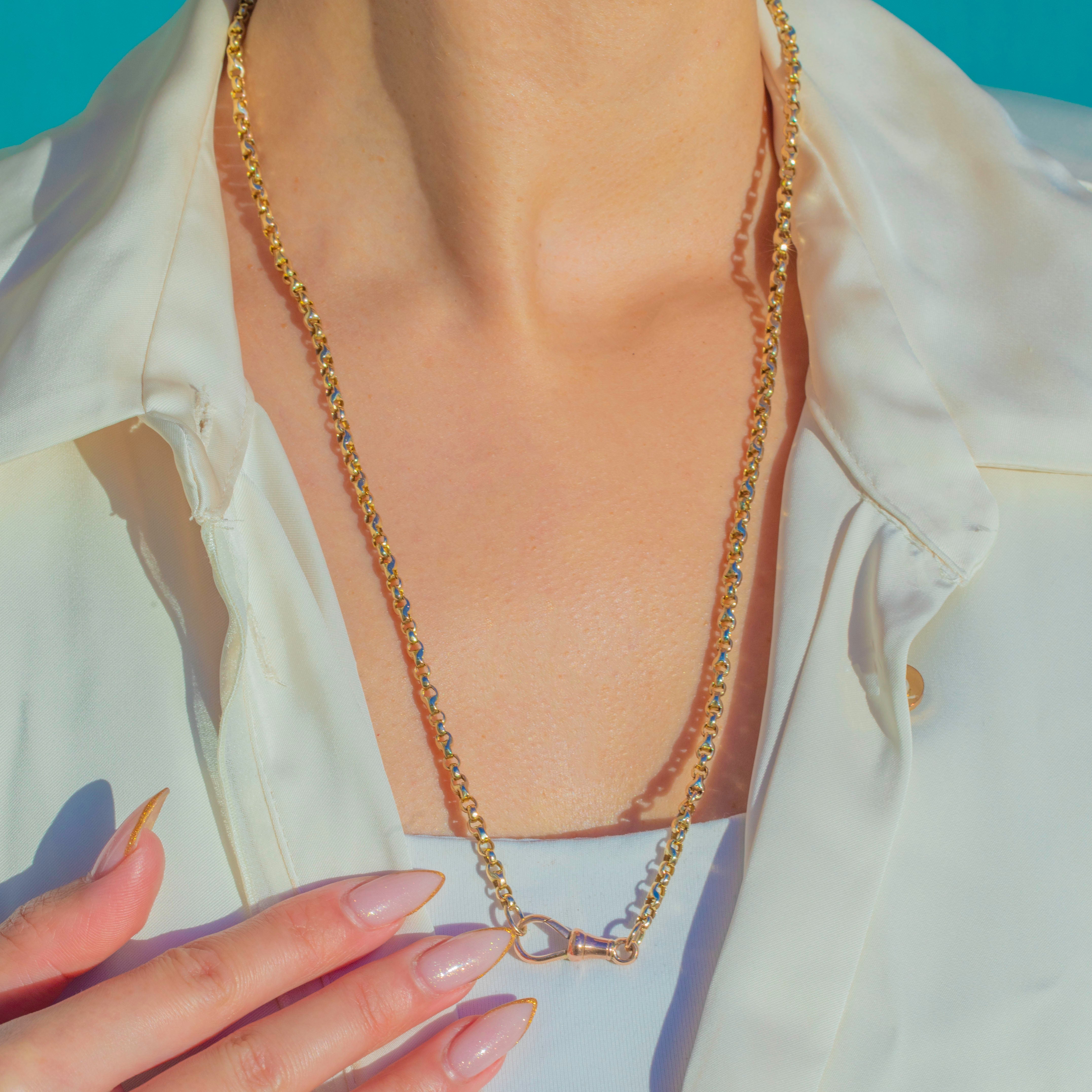 Finished with a rosy-toned 9ct Gold dog-clip, this necklace is perfect for wearing alone, layering, or styling with your favourite antique pendants and charms. A classic, versatile Victorian staple.
