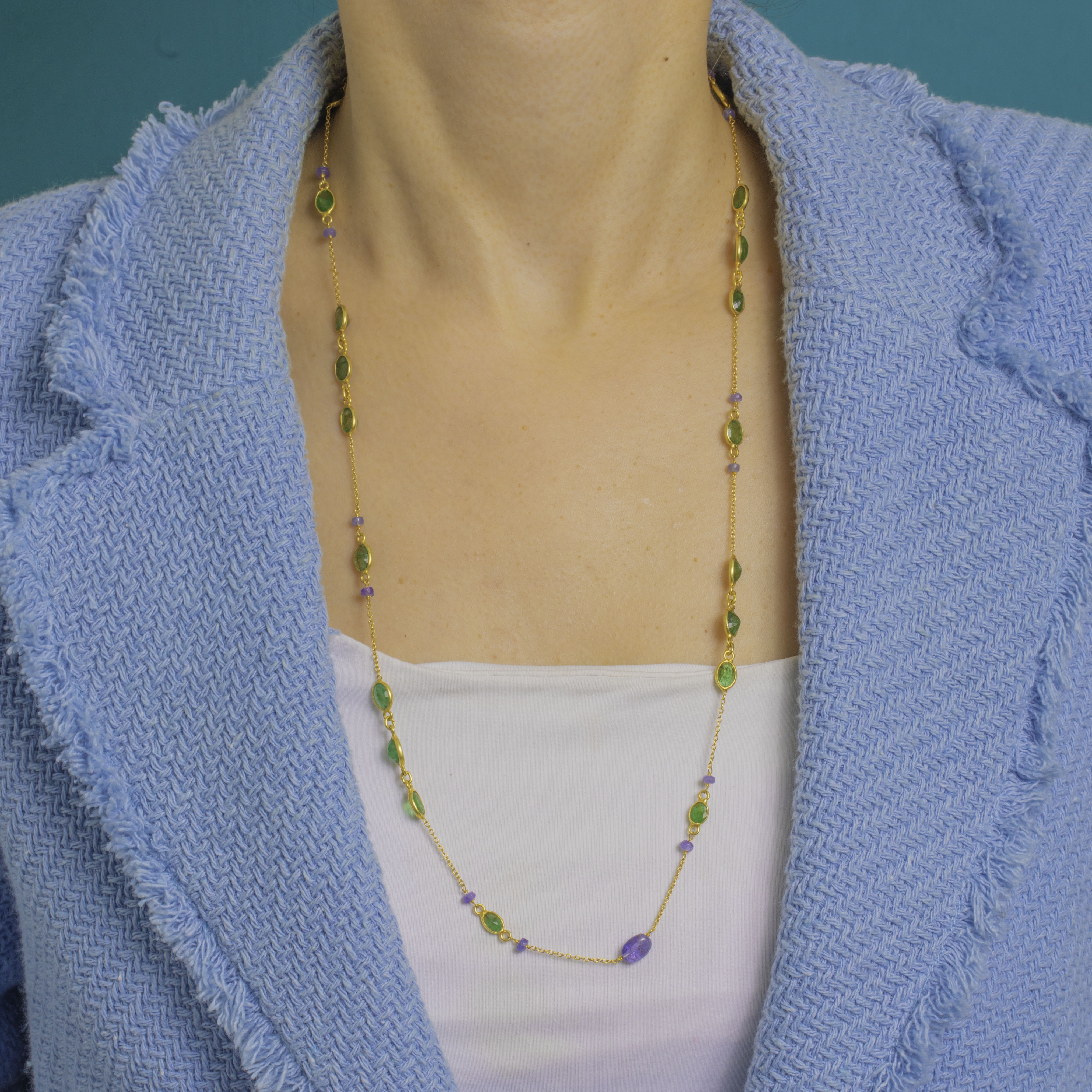 31.5" Gilded Silver Emerald & Iolite 'By the Yard' Necklace