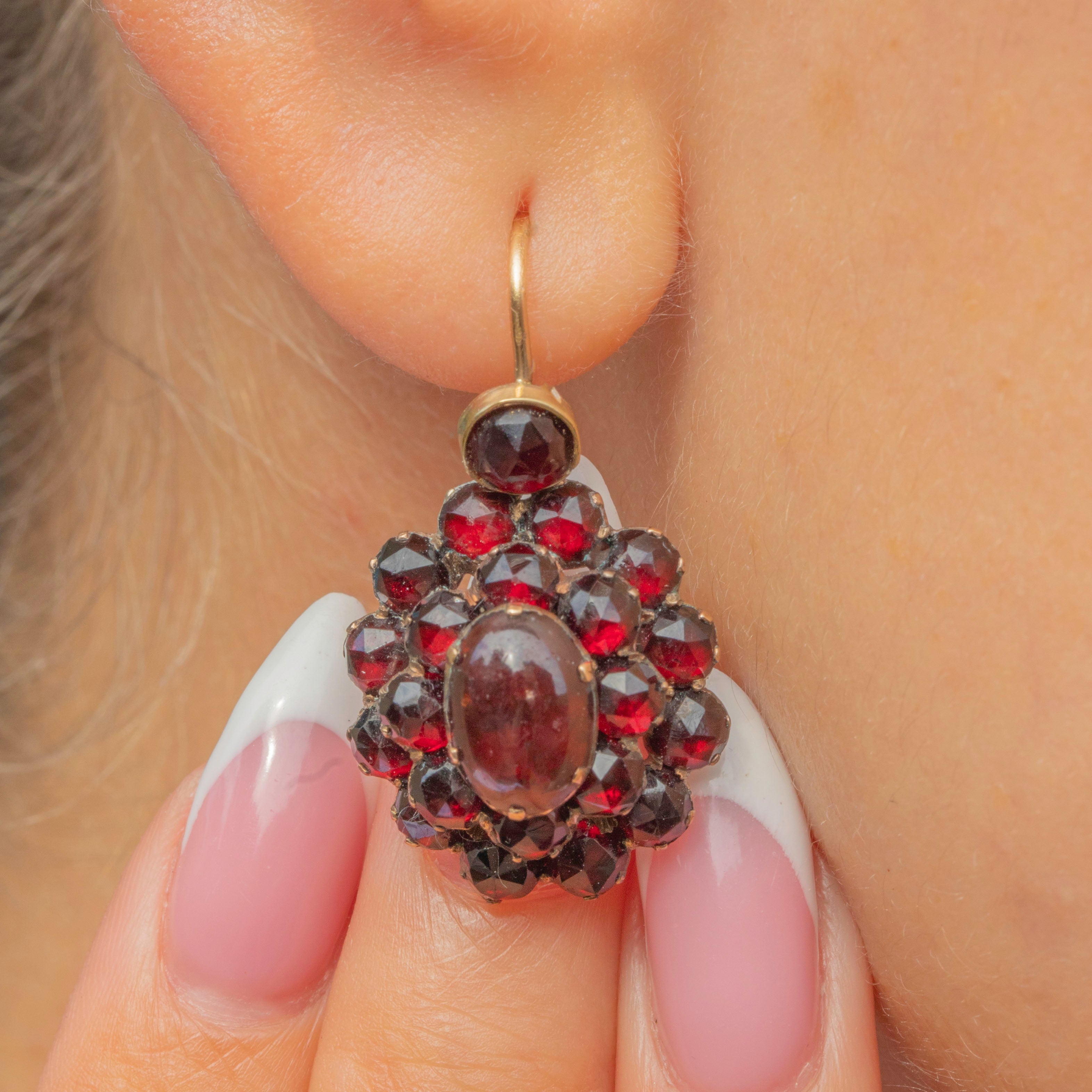 5.00ct Victorian 9ct Gold Bohemian Garnet Earrings – Cabochon & Rose Cuts
