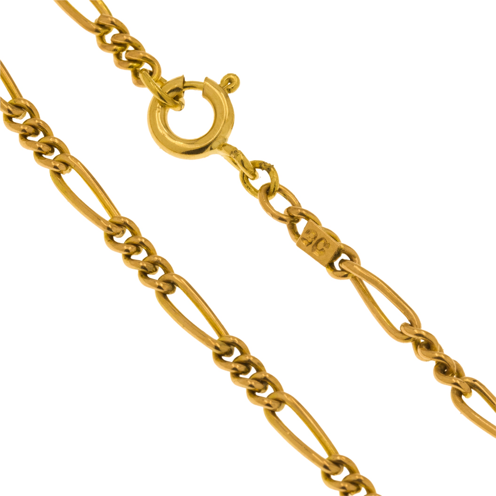 EXCELLENT. This antique 9ct Gold Figaro bracelet is in excellent condition. Her Figaro links are flawless, with a uniform design that is perfectly interlinked. The later added bolt ring is in perfect working condition allowing you to wear this antique Gold bracelet with the utmost confidence!