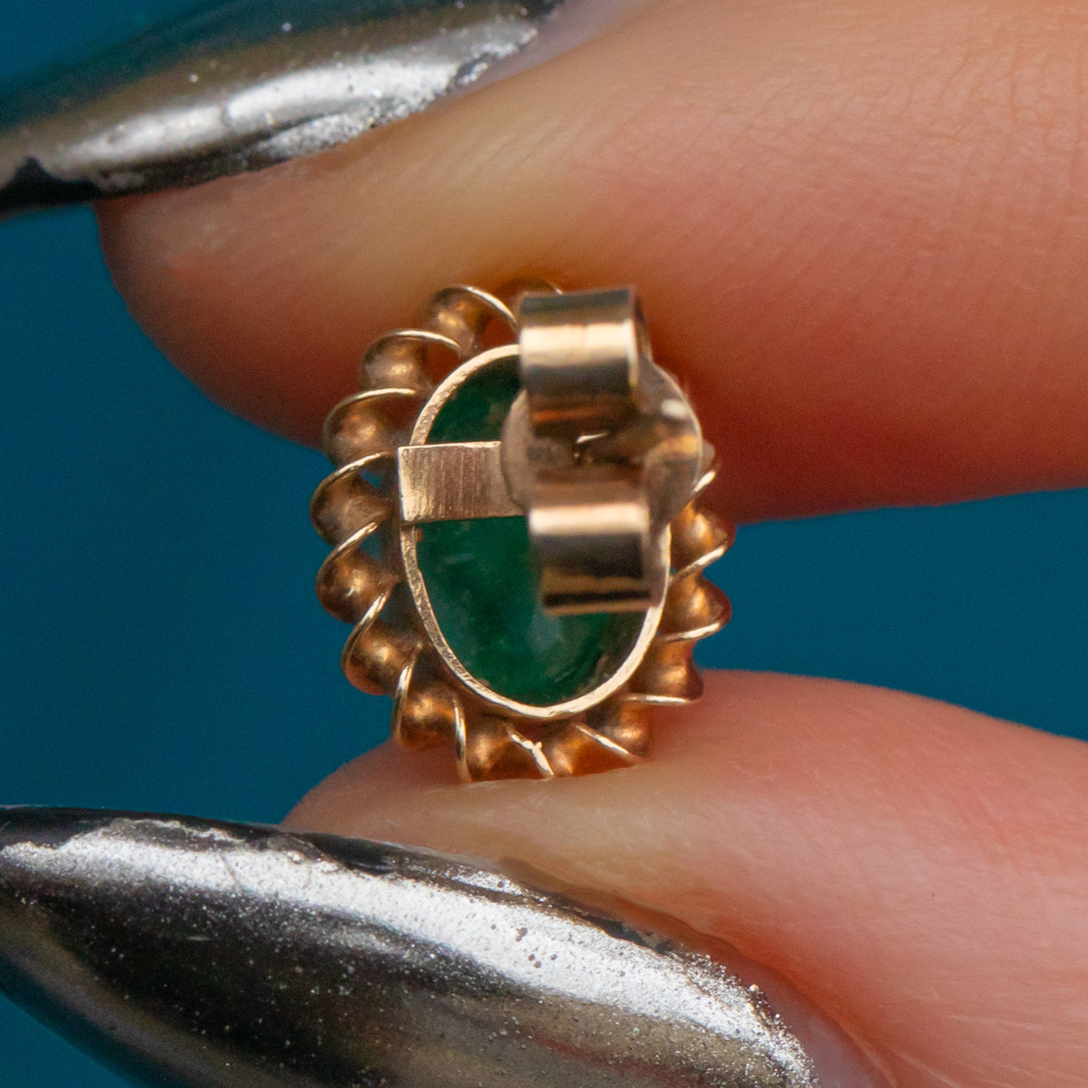 We love everything about this pair of 9ct Gold Emerald stud earrings! These Vintage Emerald studs are undeniably eleganr and will see you through the day and into the night with ease.