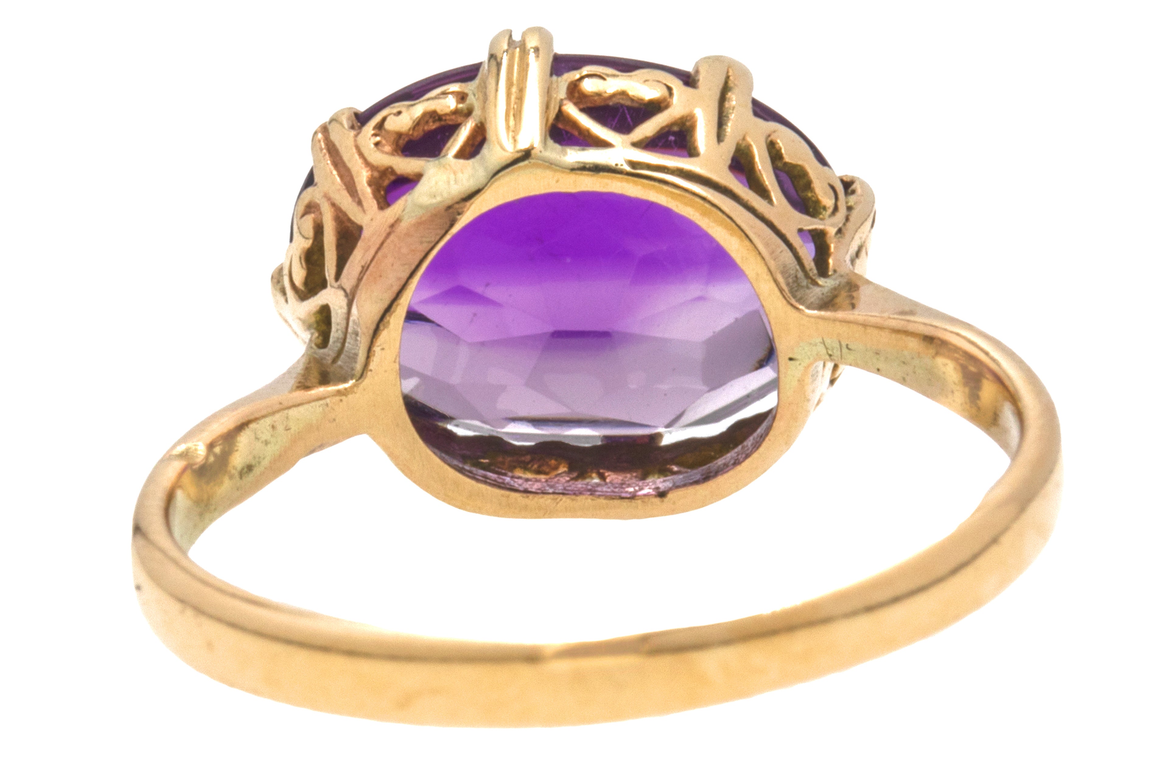 9ct Gold Amethyst Buff-Top Ring, Heart Settings
