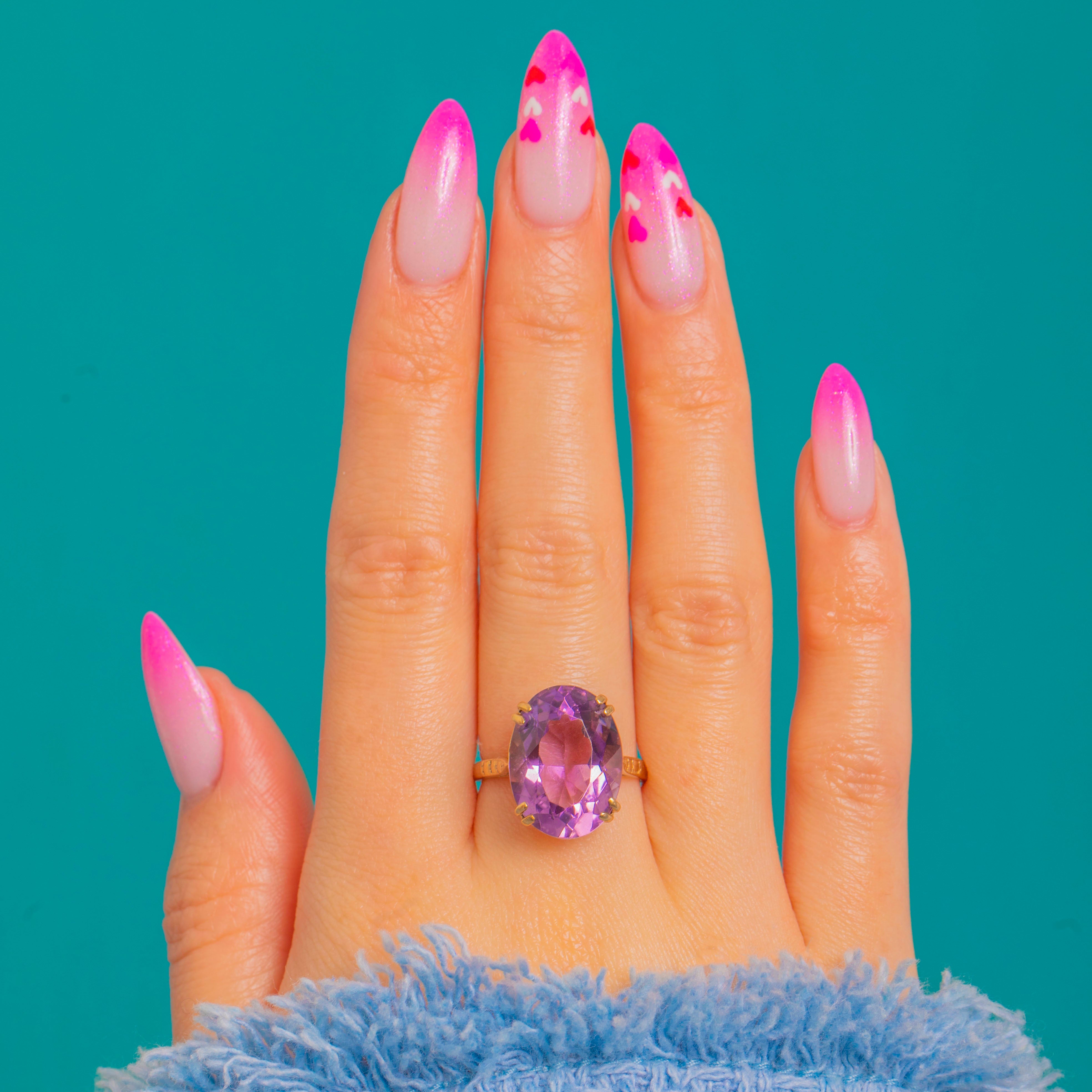 Hallmarked in London in 1864, this ring marries opulent colour with elegant craftsmanship. The Amethyst is an impressive approximately 7.00ct, its faceting alive with brightness and depth—perfect for those who love a statement gemstone with timeless Victorian allure.