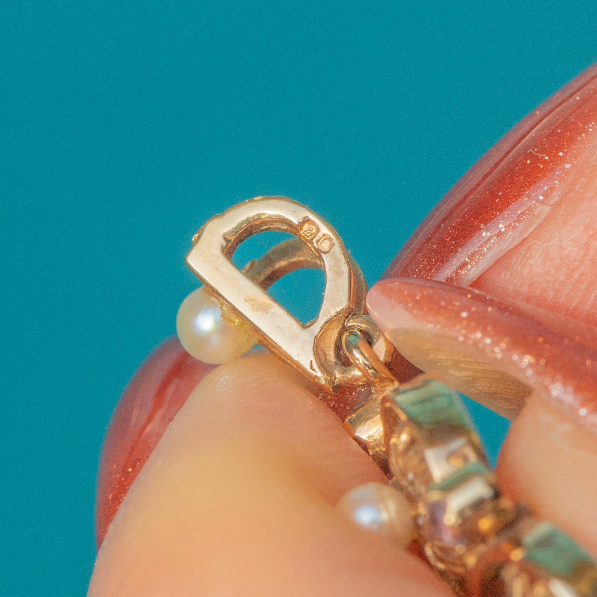 EXCELLENT: This 9ct Gold Amethyst Pearl flower cluster pendant is in excellent condition. The Gold has an even rosy hue throughout and the design of the pendant makes it a robust piece. The gemstones are all present and securely set, with no signs or surface wear. The Amethysts do vary slightly in hue, which we feel adds to their vintage charm. With a secure and study bale, you can enjoy wearing this vintage Amethyst pendant with utmost confidence!