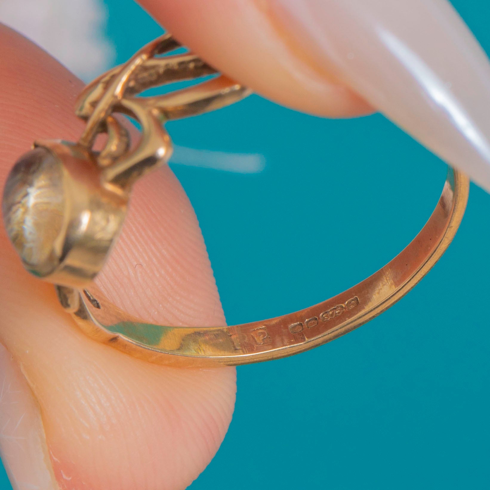 MATERIALS: Tests as 9ct Gold, Moonstone.