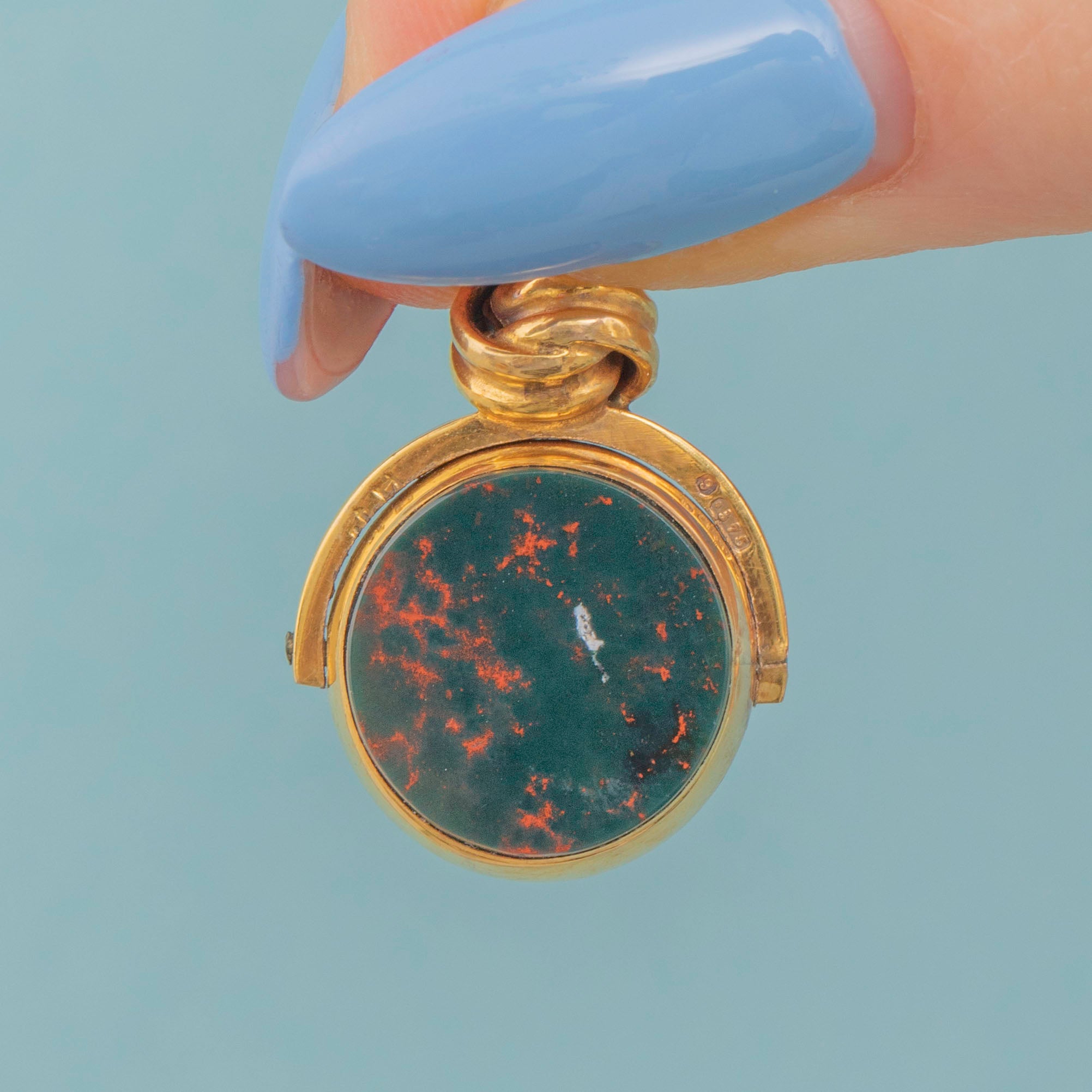 9ct Gold Bloodstone Carnelian Spinner Fob Pendant