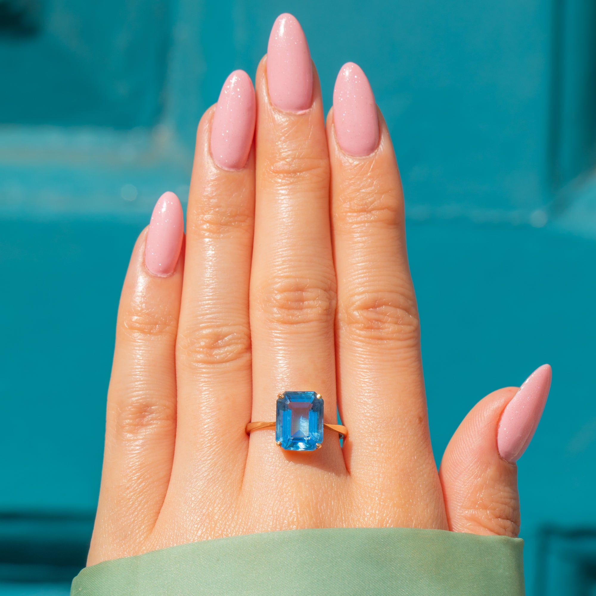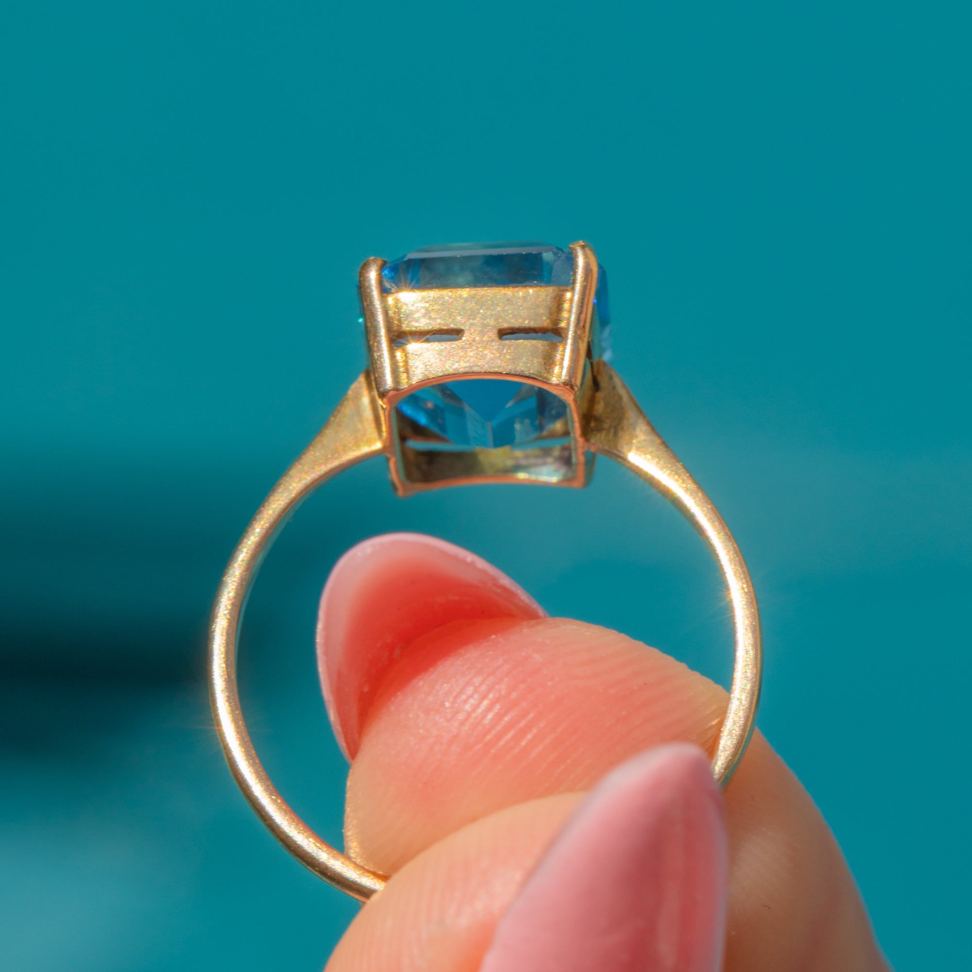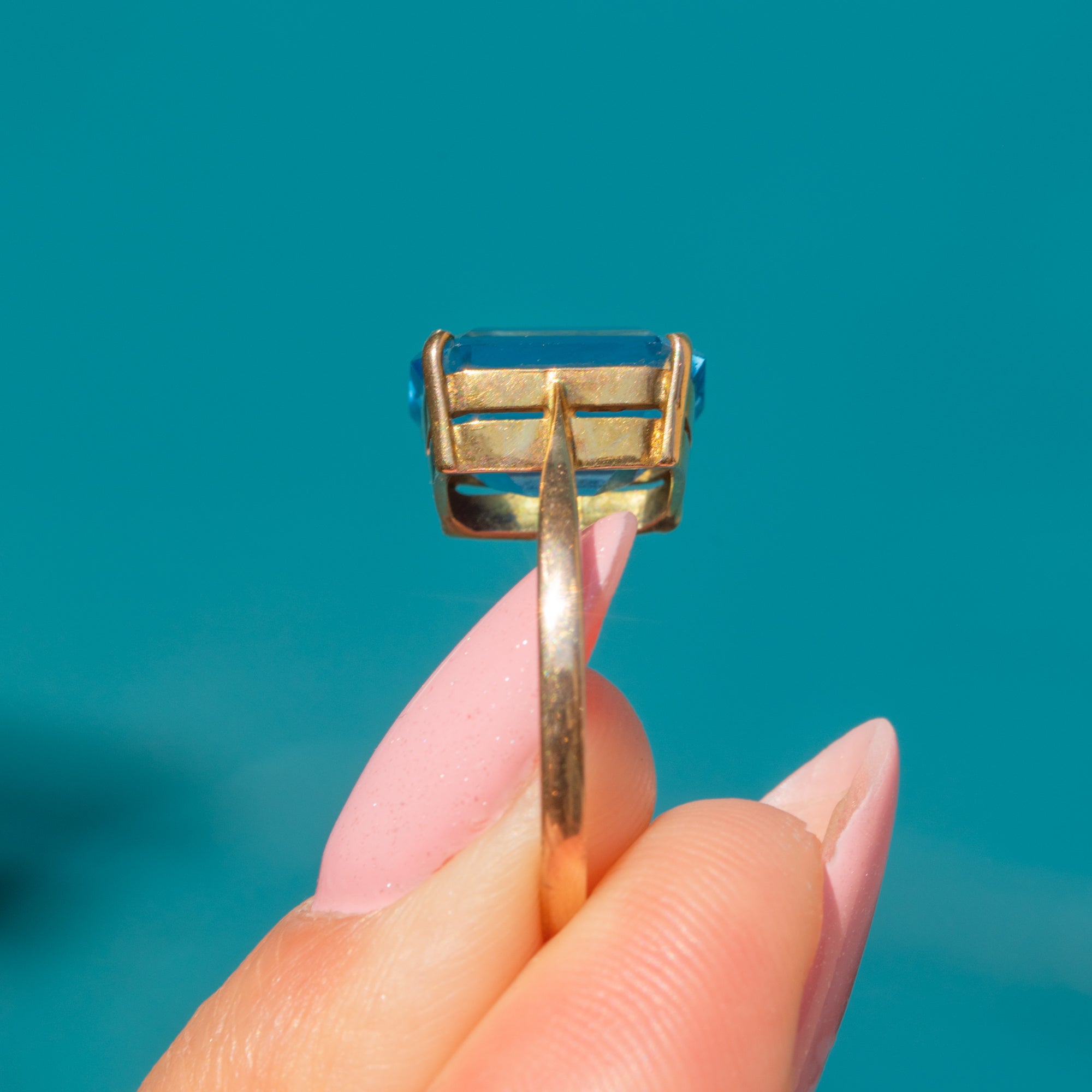 This 9ct Gold Blue Paste ring is a heavenly piece, boasting a deep azure Paste gem clasped in a saturated 9ct Gold claw setting!