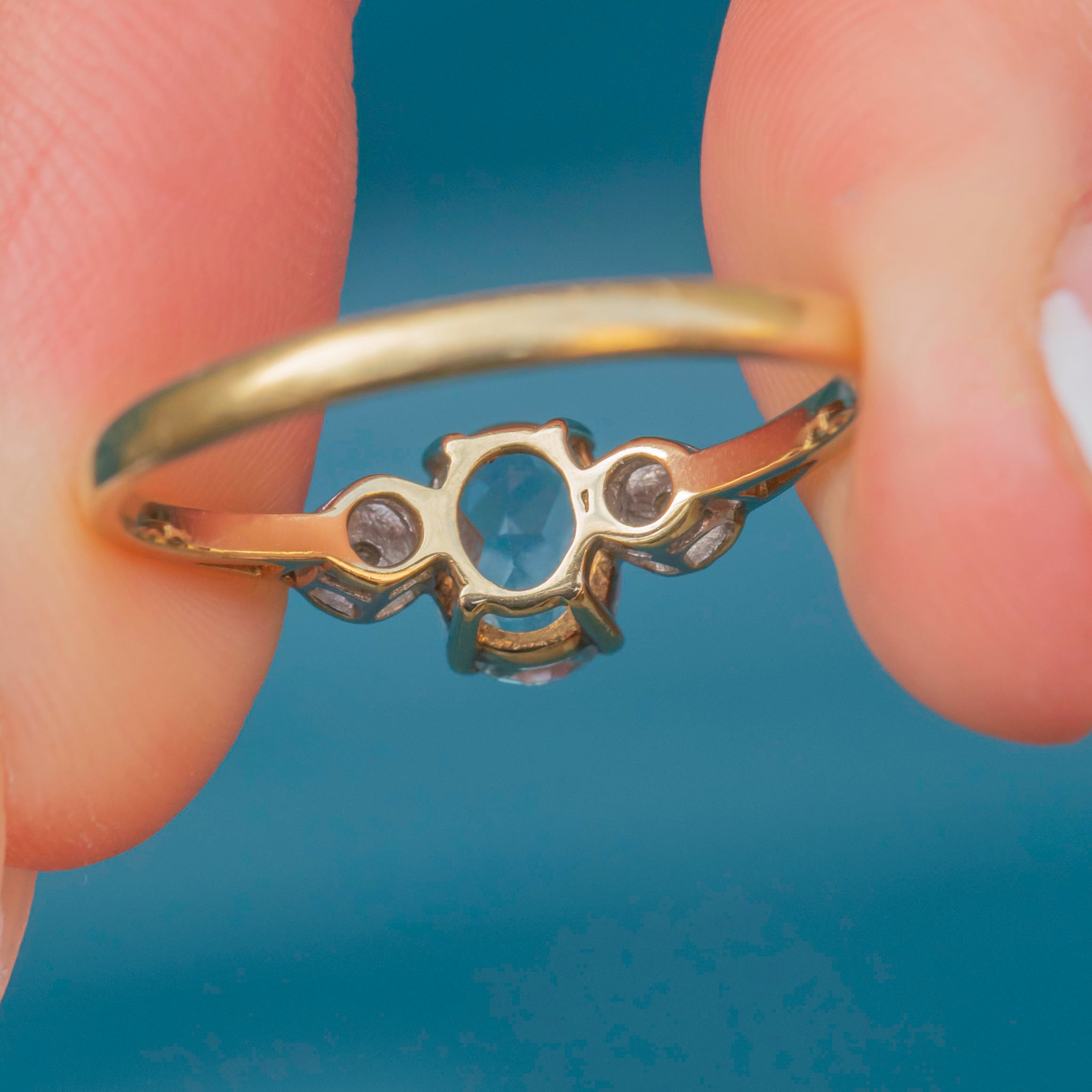 9ct Gold Blue Topaz Diamond Trilogy Ring